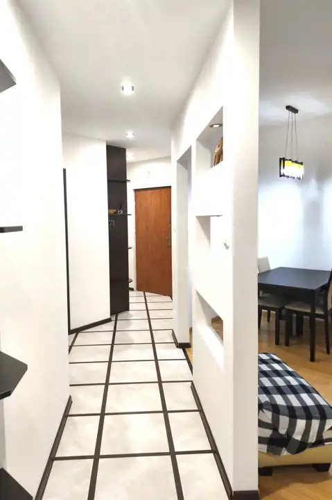 - Korytarz : meble do przechowywania obuwia, szafa wnękowa.