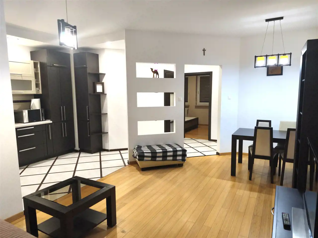 - w pokojach podłogi z deski bambusowej (grubość ponad 1cm),