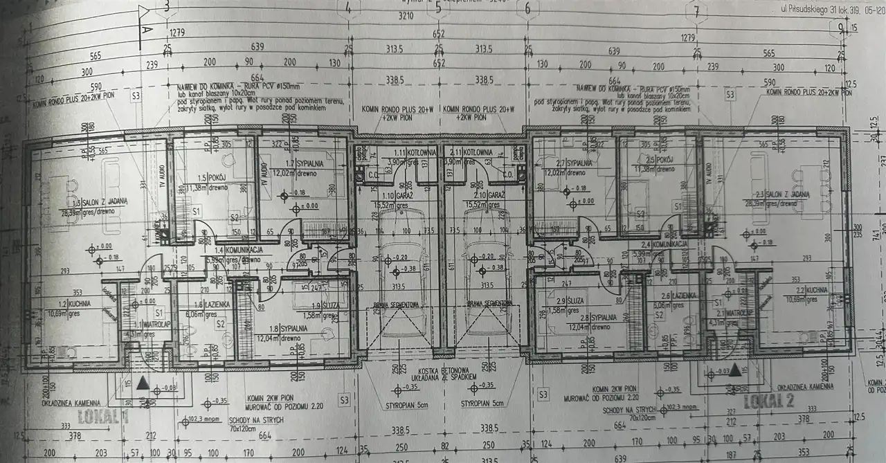 Kuchnia oddzielna z dużym oknem otwarta 10,70 m2, salon z kominkiem 28,40 m2, sypialnia 12m2, sypialnia 12m2, sypialnia 11,40 m2, obszerna łazienka z oknem 6 m2, garaż 15,50m2 i kotłownia 3,90m2.