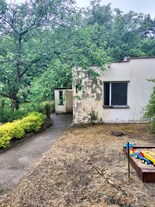 Na terenie działki posadowione są : garaż dwustanowiskowy ;budynek o pow. ok.50 m 2 (który można ew. zaadoptować na cele nieuciążliwej działalności gospodarczej ).