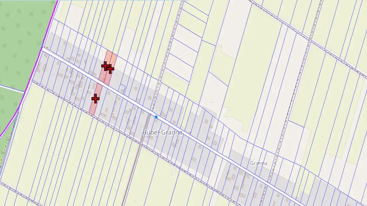 Proponujemy Państwu nieruchomość gruntową położoną w Bubel Granna (gm. Janów Podlaski). Nieruchomość składa się z dwóch przyległych w kształcie prostokąta o wymiarach ok. szer. 42 m x dł. 101 m. o powierzchni łącznej ok. 4247 m² zabudowanej budynkiem mieszkalnym.