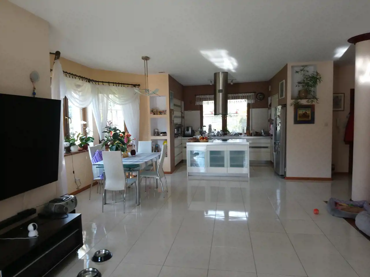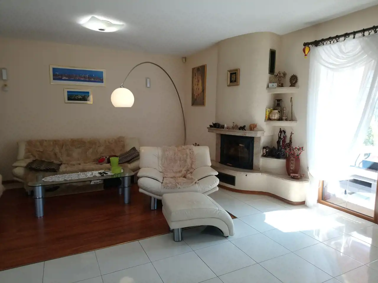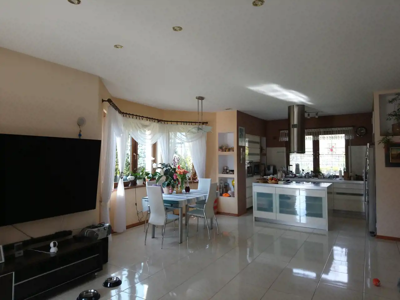 - przestronny salon połączony z jadalnią i aneksem kuchennym o powierzchni około 50m2 z kominkiem i rozprowadzeniem ciepła i wyjściem na przestronny taras około 80m2.