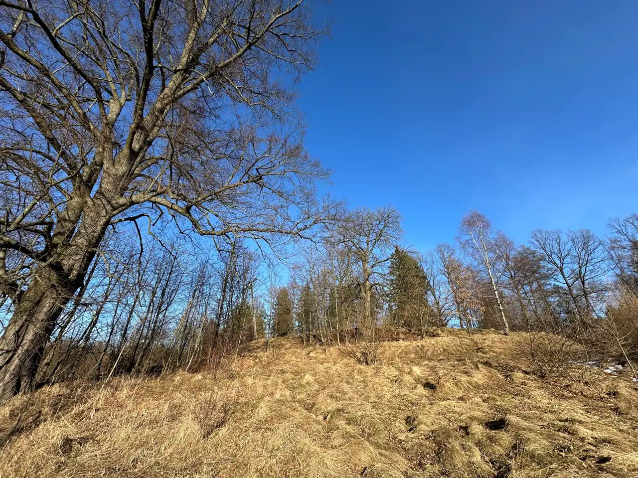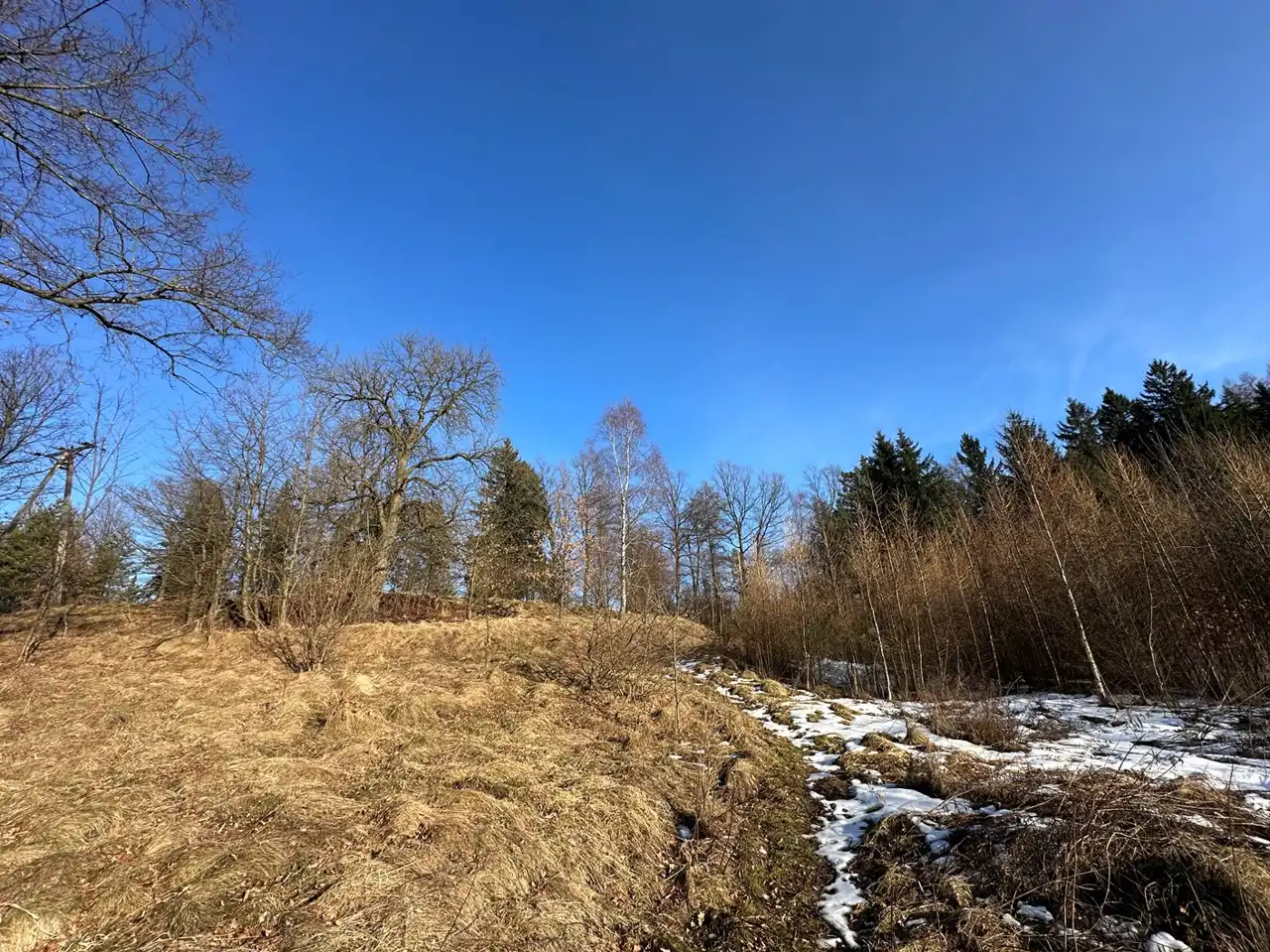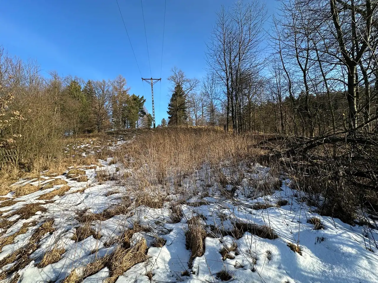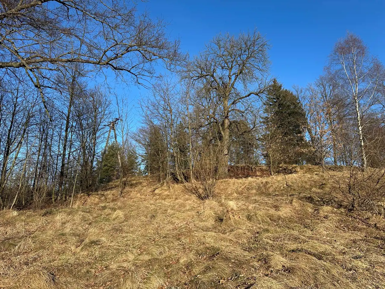 Zaraz przy działce znajduje się las a poniżej działki kilka domów (których nie widać gdy teren się zazieleni.
