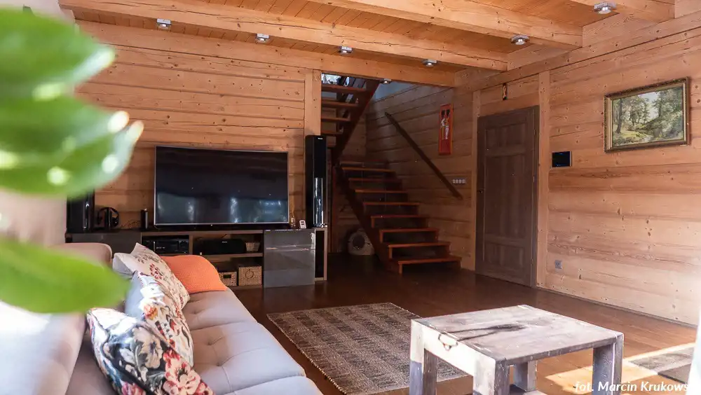 Dodatkowe informacje: dom bez podpiwniczenia wybudowany w technologii tradycyjnej, konstrukcja węgłowa z płazów świerkowych, wykończony w wysokim standardzie z dbałością o szczegóły.