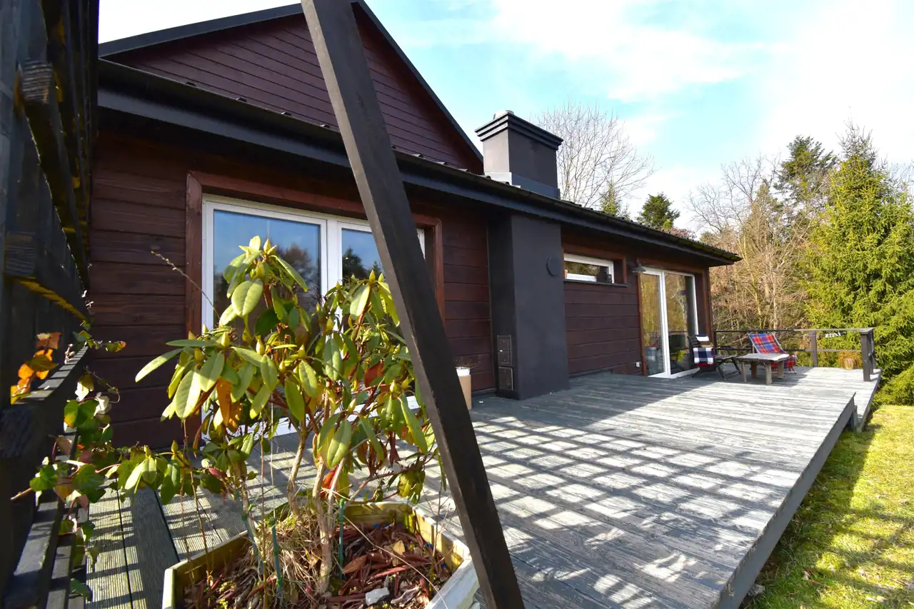 - dobudowany nowy, drewniany taras o powierzchni ok. 50m2 z widokiem na las oraz możliwością dobudowy grilla;
