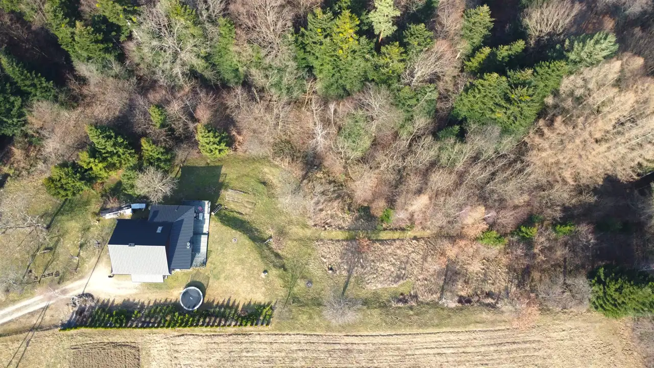 Nieruchomość otoczona pięknymi drzewami, obfitującymi w malownicze polany, ścieżki spacerowe i dzikie zwierzęta, co czyni to miejsce rajem dla miłośników przyrody. Można tu cieszyć się ciszą oraz korzystać z dobrodziejstw zdrowego, leśnego klimatu.