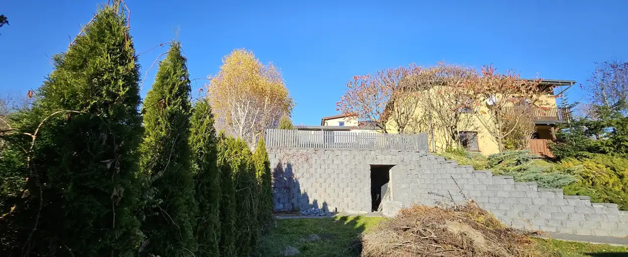 - nowo wymurowana piwniczka, ziemianka, która umożliwia przechowywanie warzyw lub może służyć za schron