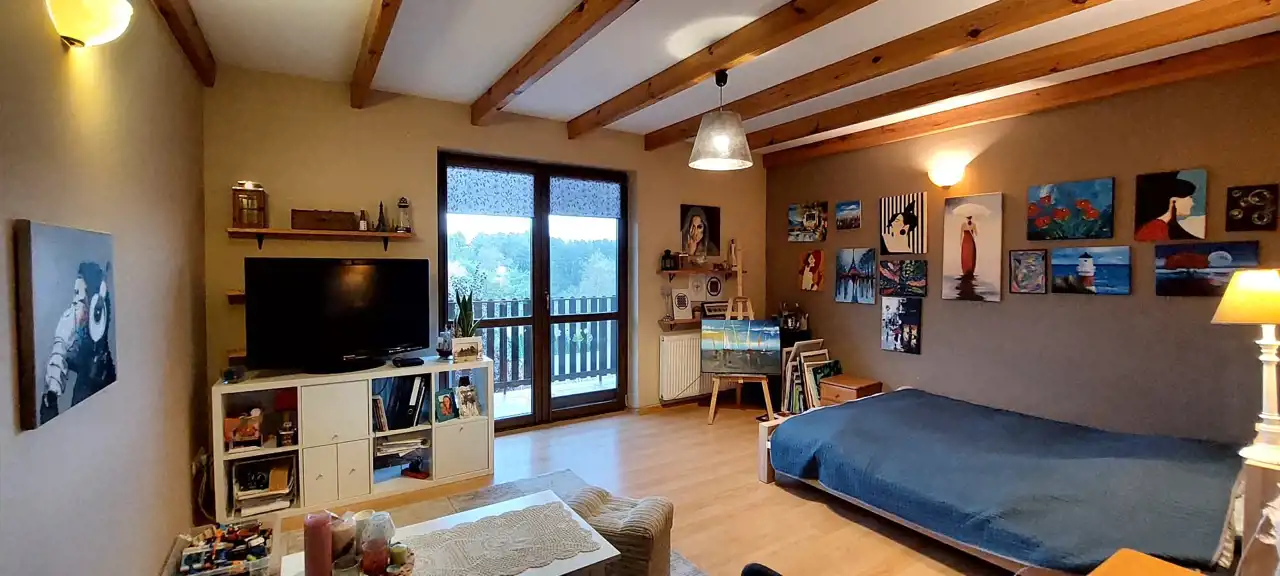 To wyjątkowe miejsce które łączy w sobie komfort mieszkania w przestronnym domu z urokami życia na wsi, w otoczeniu przyrody, idealne dla rodzin z dziećmi, osób ceniących prywatność jak i tych którzy szukają miejsca do życia i pracy w jednym.