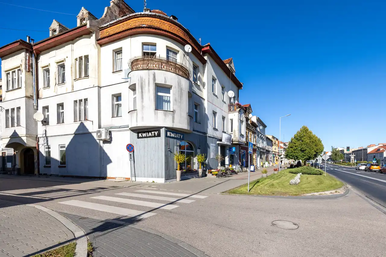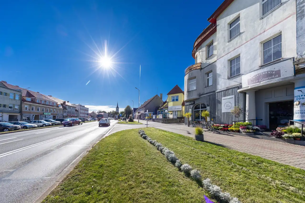 To lokalizacja, która łączy zalety centrum i świetnej ekspozycji – doskonała widoczność z głównej drogi wojewódzkiej, duży ruch pieszych i samochodów oraz łatwy dostęp do sklepów, usług i komunikacji.