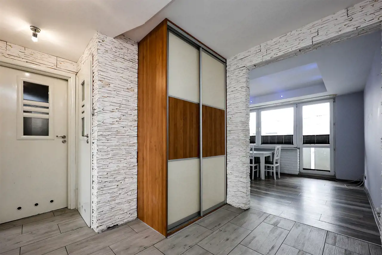 przedpokój z zabudowaną, pojemną szafą.