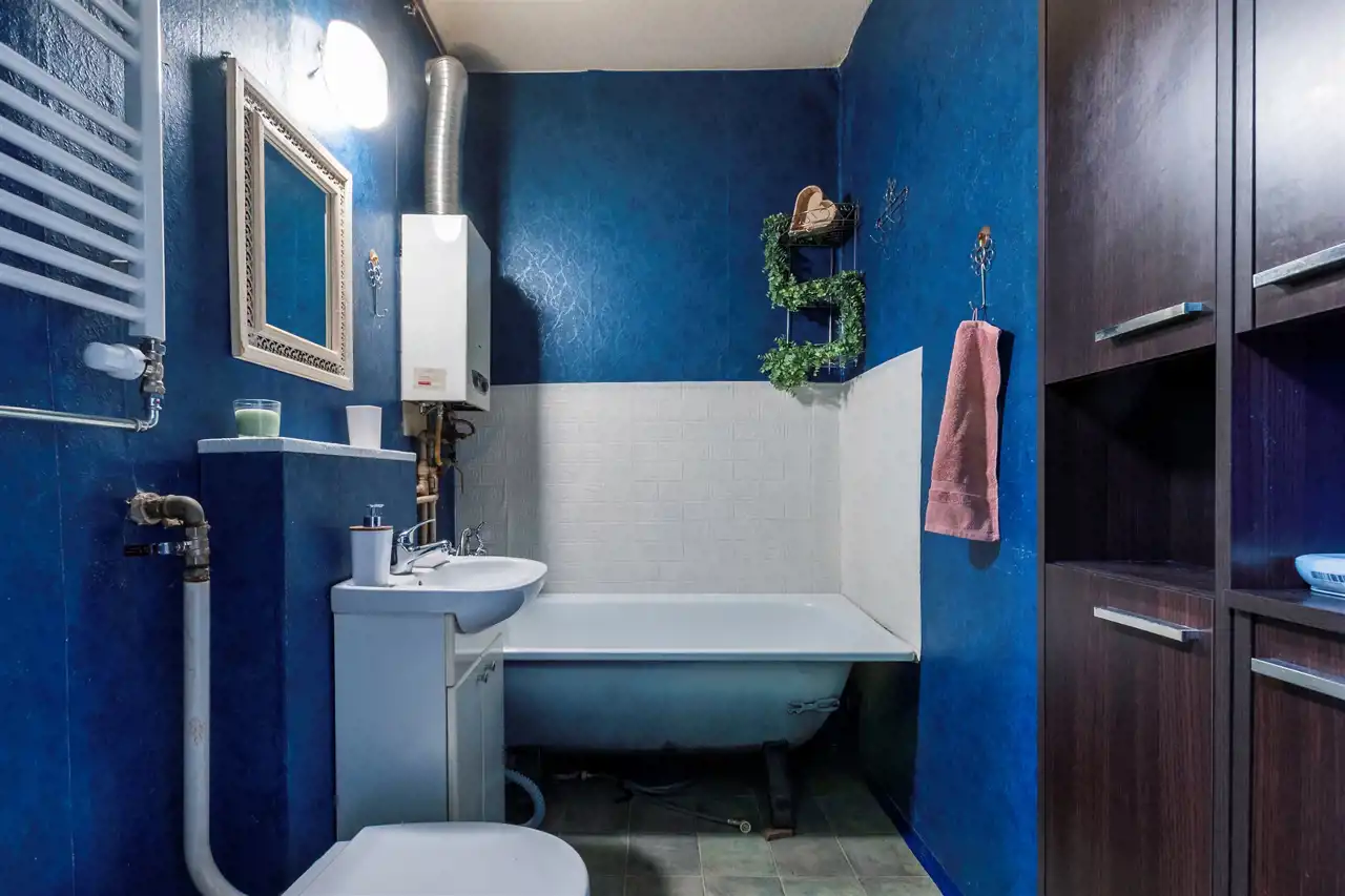 - Media Ogrzewanie: C.O. miejskie; Woda: ciepła - piecyk gazowy; Gaz: tak - miejski