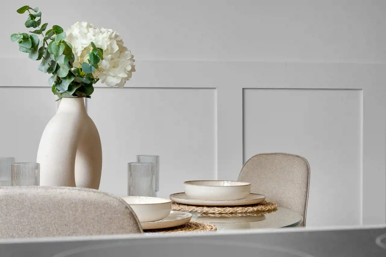 Wykorzystano wysokiej klasy materiały, a ponadczasowe wykończenie tworzy atmosferę elegancji i ciepła.