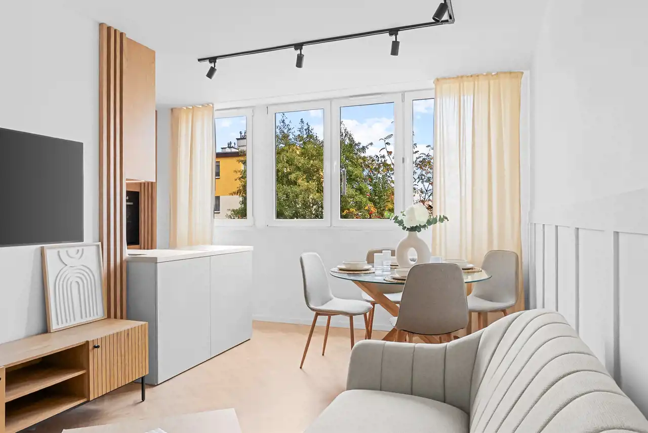 Każdy centymetr tego wnętrza został starannie zaprojektowany z myślą o komforcie i estetyce.