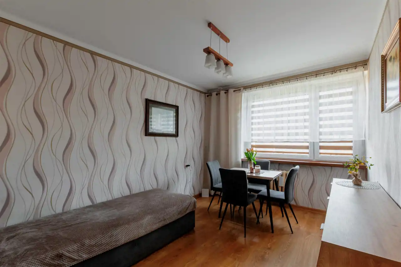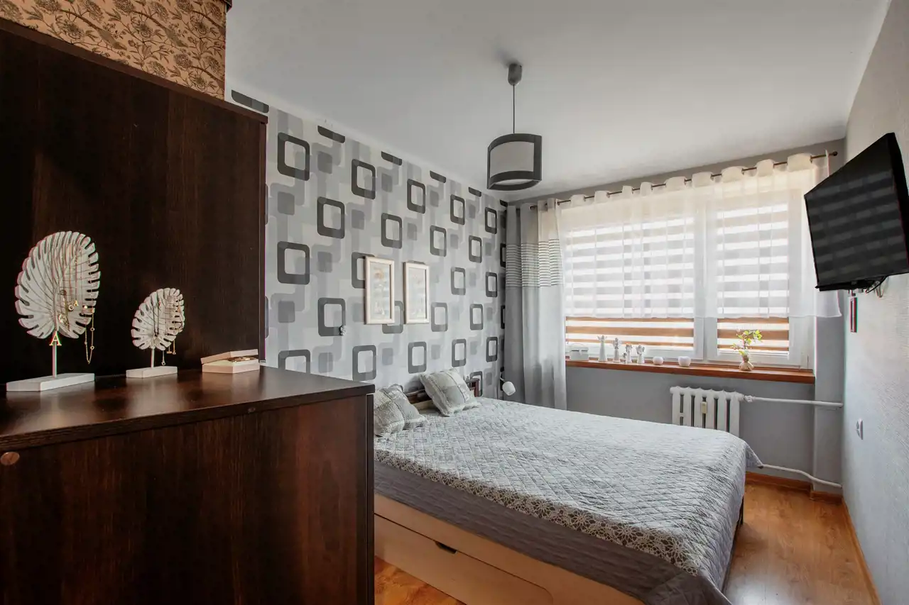 Forma własności to spółdzielcze własnościowe prawo do lokalu, dzięki czemu mieszkanie może kupić również osoba nieposiadająca obywatelstwa polskiego – bez konieczności uzyskiwania zgody ministerstwa. Czynsz administracyjny około 880 zł 2 osoby.
