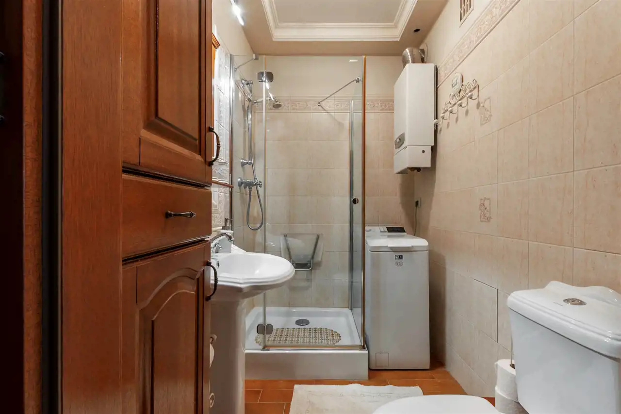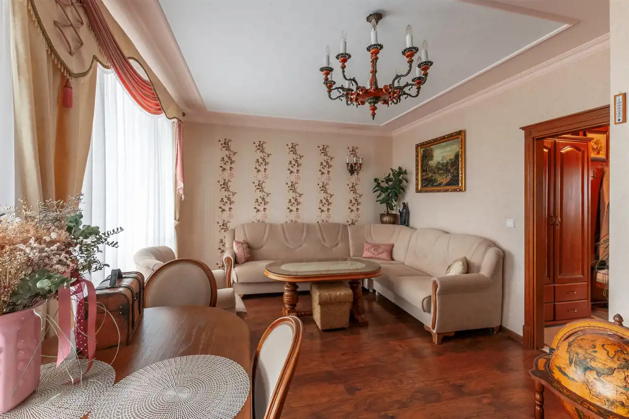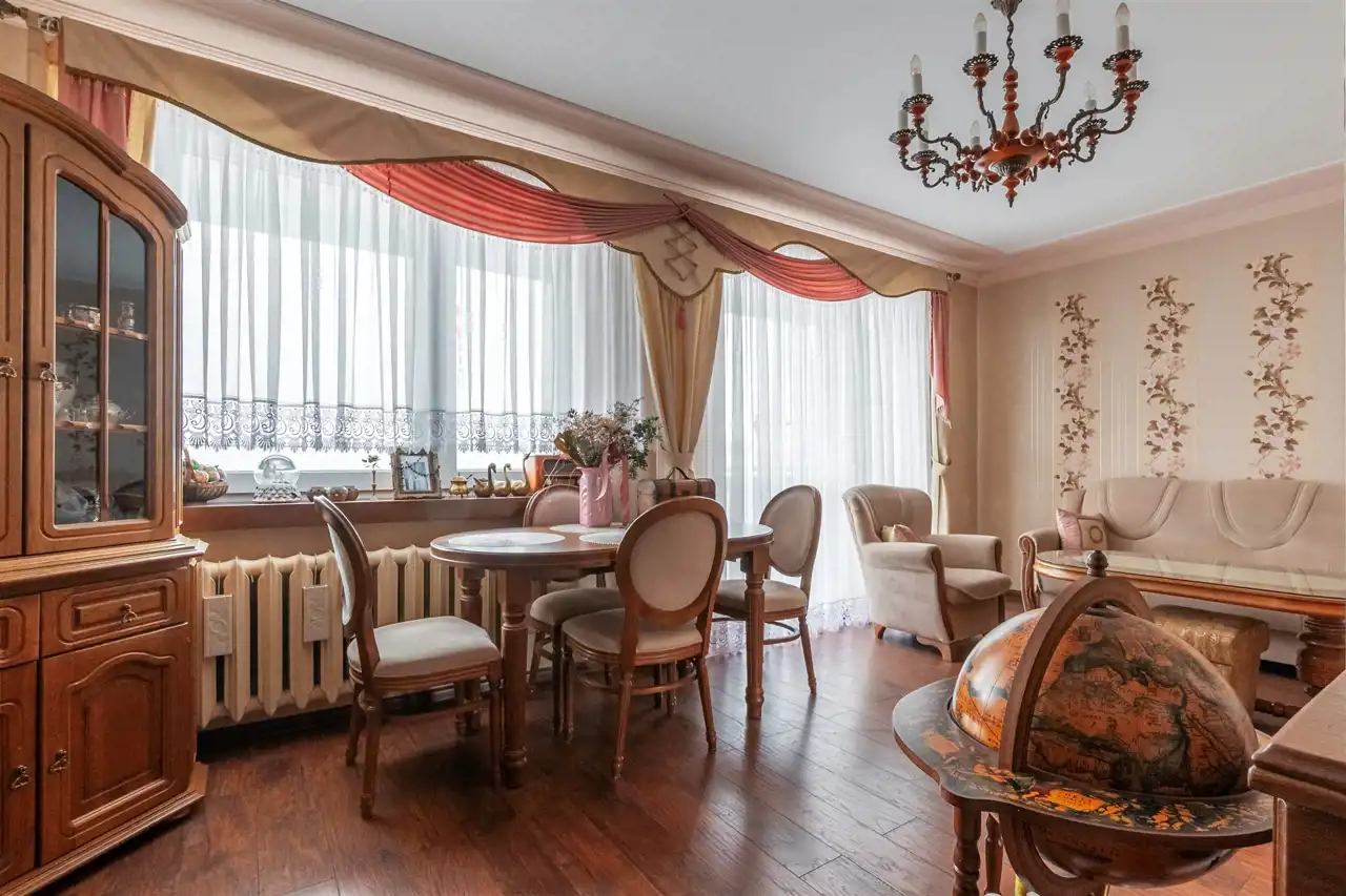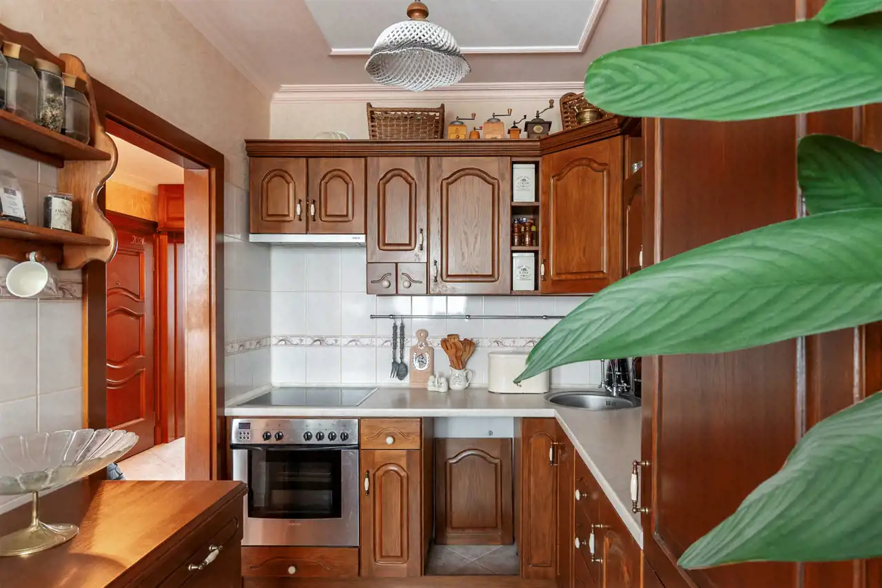 Dębowa kuchnia, ościeżnice z litego drewna wykonywane na specjalne zamówienie, wysokiej klasy meble robione przez stolarza - prawdziwe rzemiosło, które dziś spotyka się coraz rzadziej. Całość dopełnia subtelna sztukateria. Do dyspozycji również duży balkon typu loggia, idealny na chwilę wytchnienia.