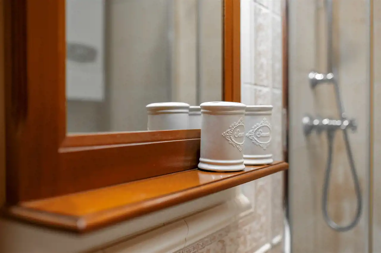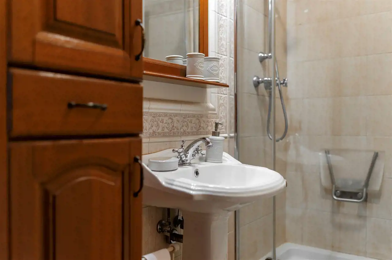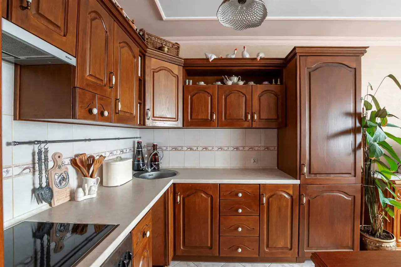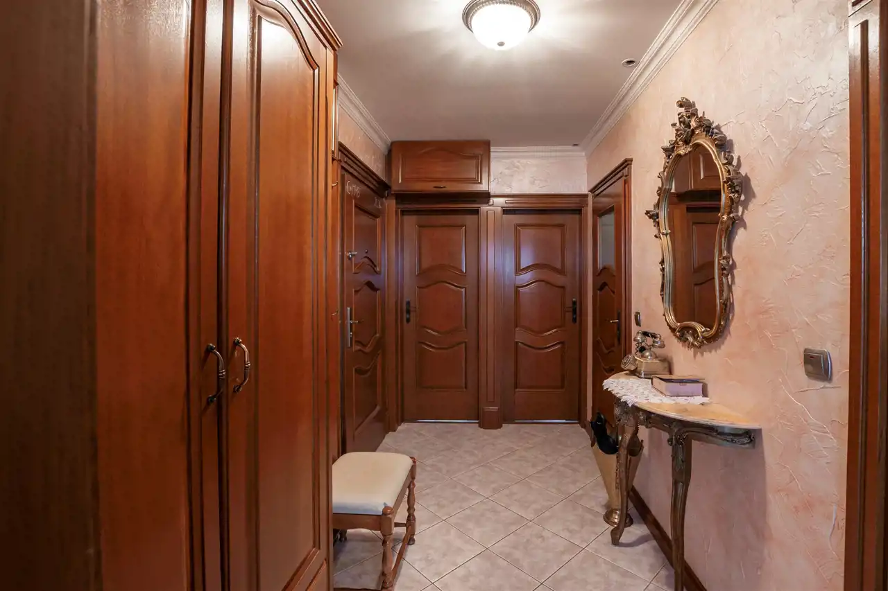 Dębowa kuchnia, ościeżnice z litego drewna wykonywane na specjalne zamówienie, wysokiej klasy meble robione przez stolarza - prawdziwe rzemiosło, które dziś spotyka się coraz rzadziej. Całość dopełnia subtelna sztukateria. Do dyspozycji również duży balkon typu loggia, idealny na chwilę wytchnienia.