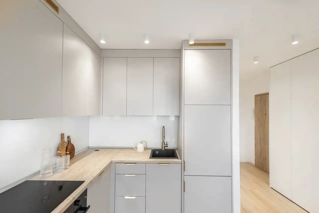 Mieszkanie przeszło kompleksowy remont i zostało wykończone w wysokim standardzie – wnętrze jest w pełni wyposażone, starannie zaprojektowane i gotowe do zamieszkania.