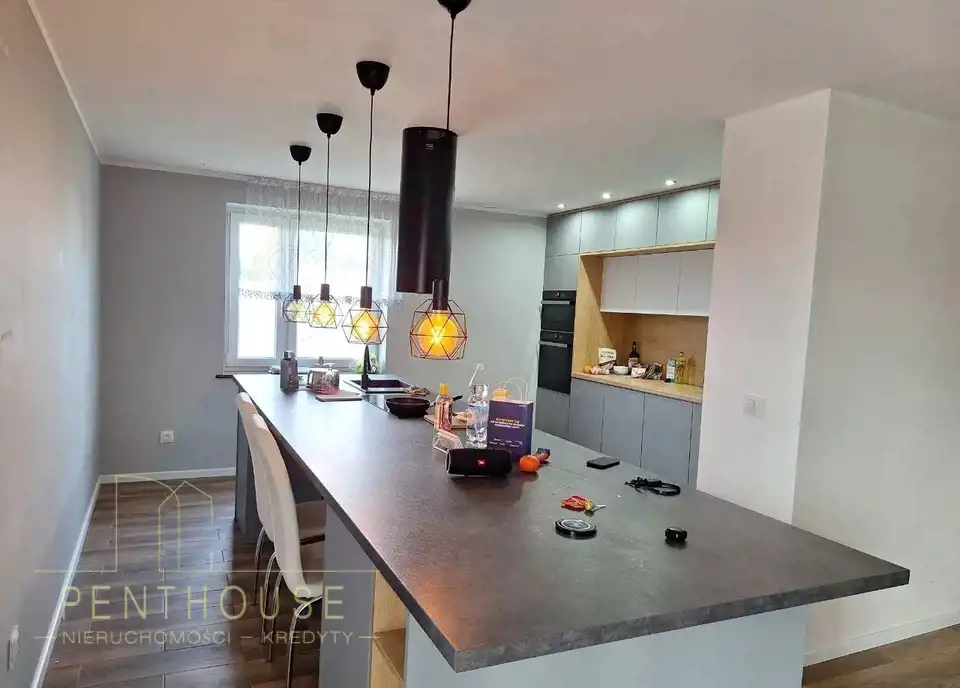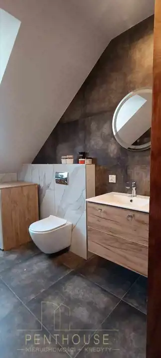 piętro- salon z kuchnią, 5 sypialni, 2 łazienki, garderoba, klatka schodowa