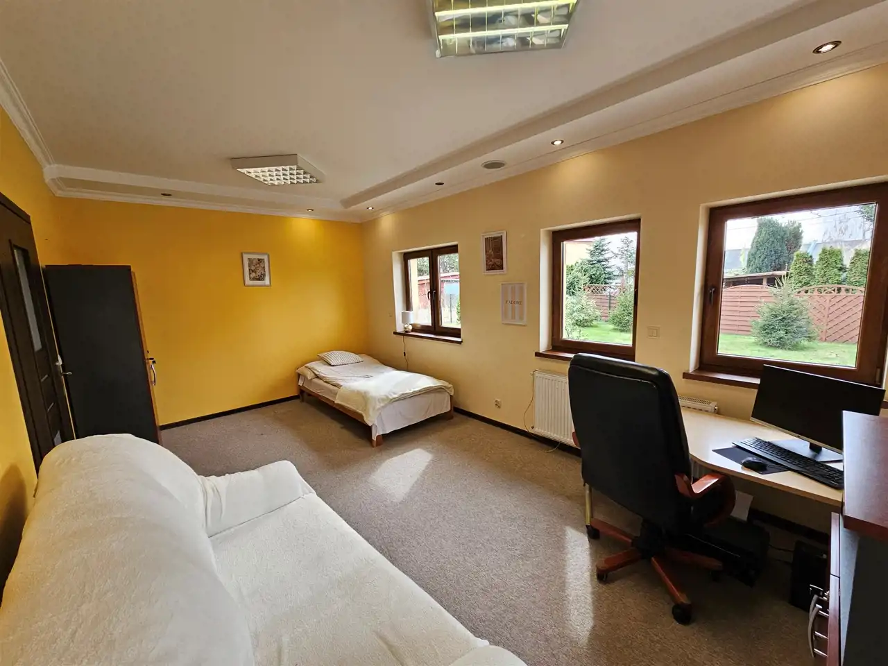 Na sprzedaż dom wolnostojący w Jaworze. Dom o funkcjonalnym układzie, który sprawdzi się zarówno jako miejsce do życia, jak i prowadzenia działalności. W chwili obecnej pełni funkcję mieszkalno-biurową. Budynek ma 142 m2 powierzchni z dodatkowym pokojem w miejscu garażu. Po przywróceniu funkcji garażu powierzchnia użytkowa będzie wynosiła 125 m2