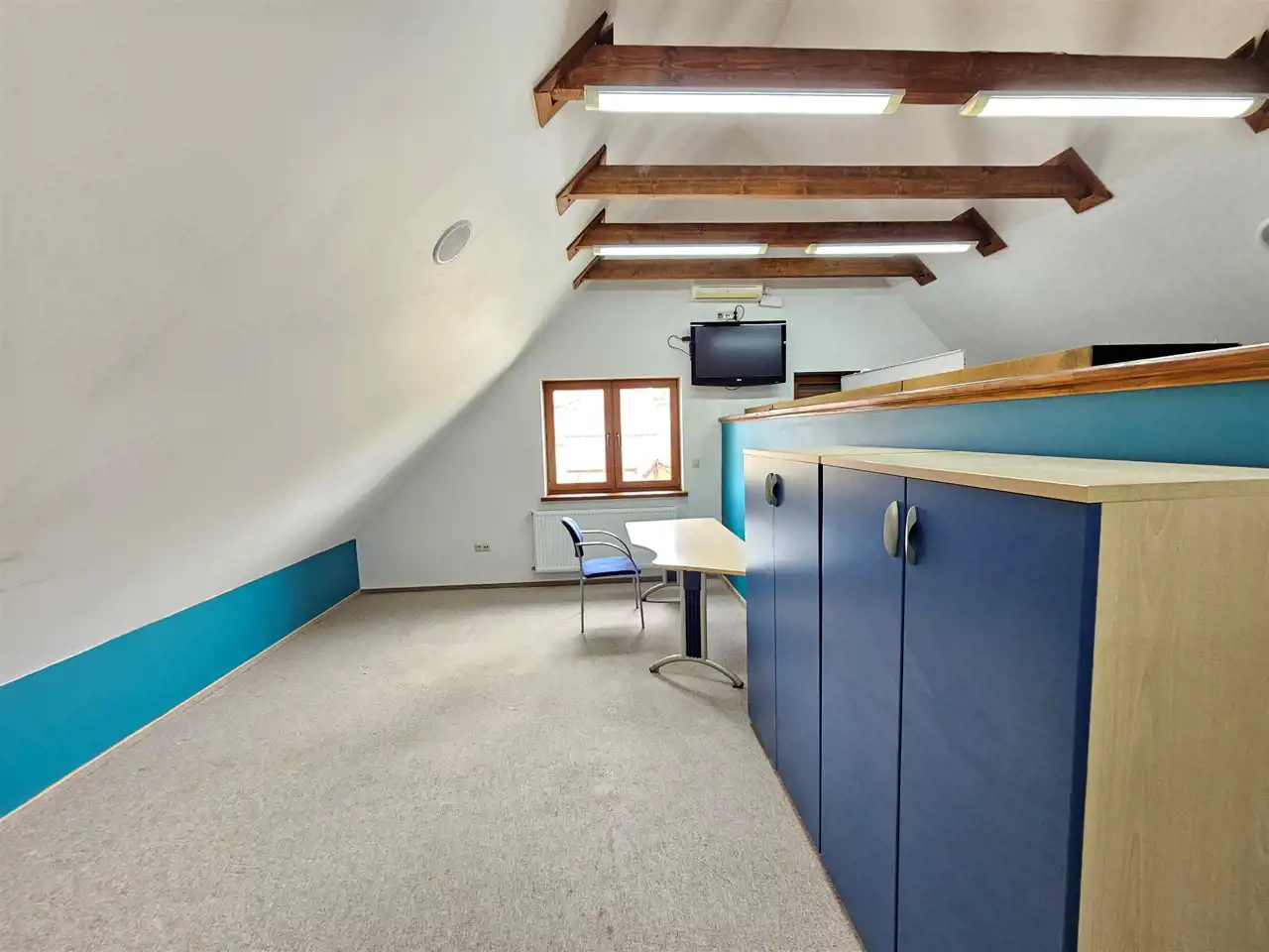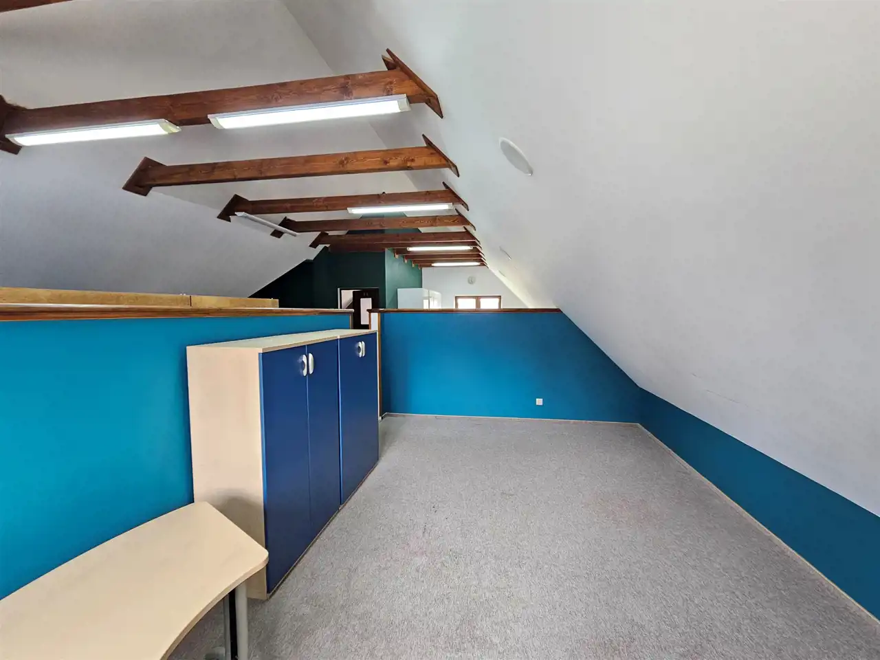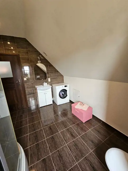 Poddasze: pokój, łazienka oraz dużą otwartą przestrzeń, którą można podzielić nawet na trzy niezależne pomieszczenia.
