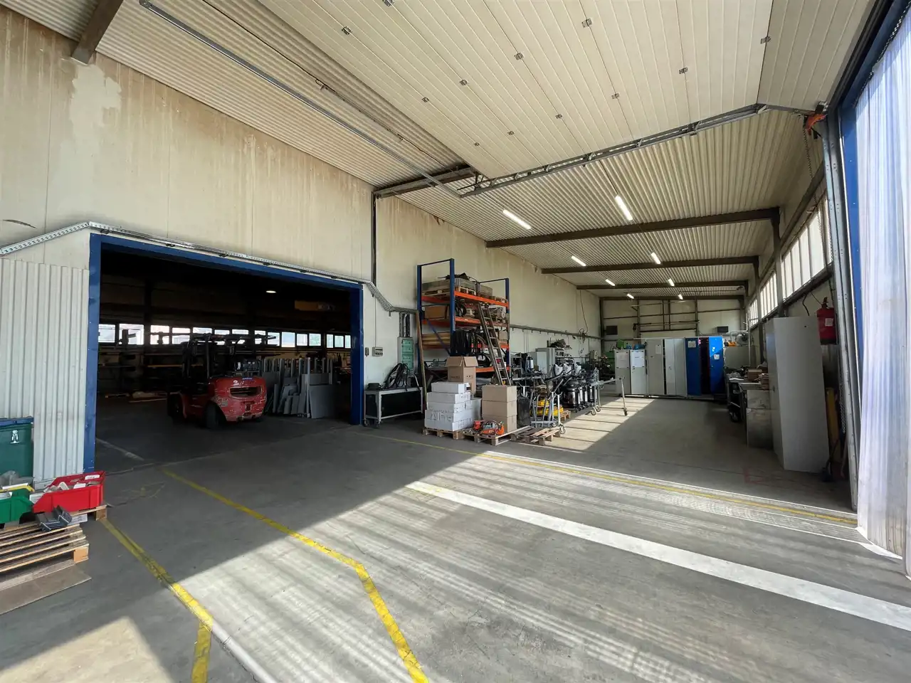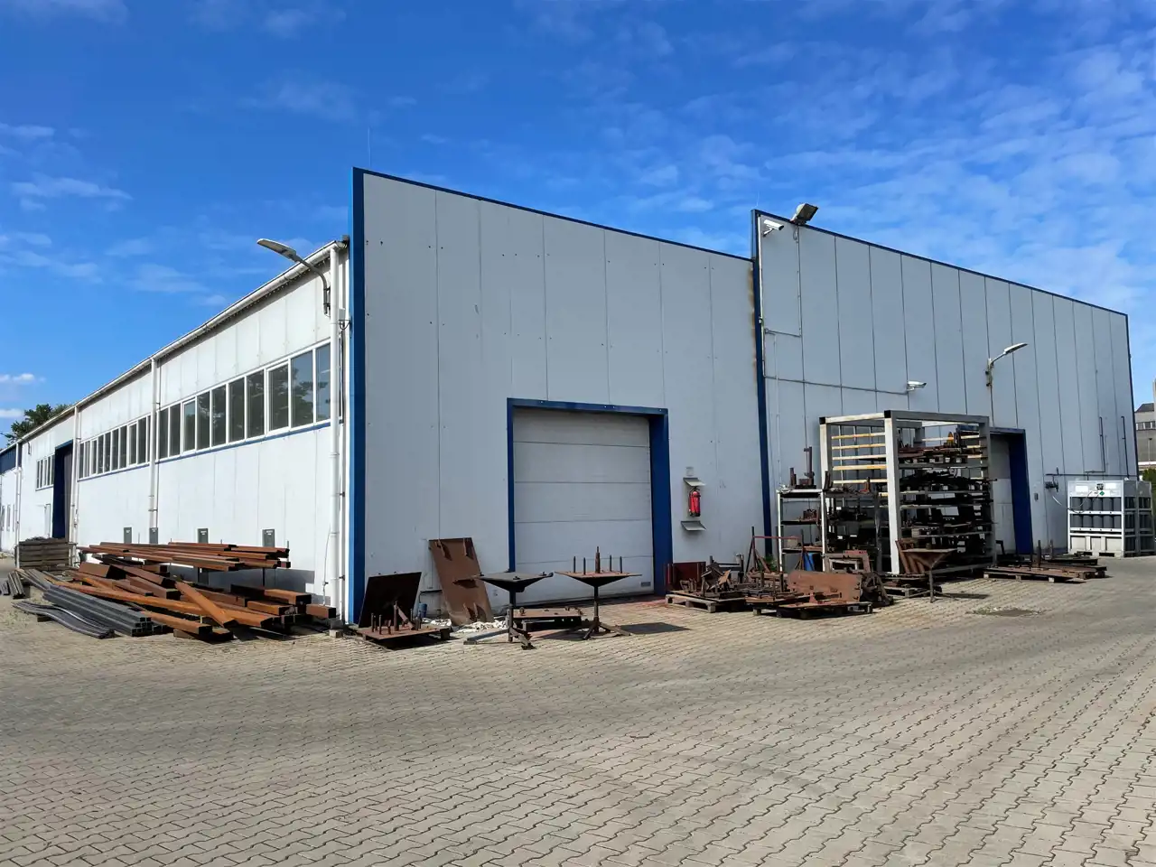 - hala nr 1 – 1465,1 mkw p.u., wymiar 24,5m x 60,7 m x wys.6,8 m, składa się z części biurowo-socjalnej oraz produkcyjnej, konstrukcja stalowa, dwunawowa, ściany i dach kryte płytami warstwowymi z rdzeniem ze styropianu, bramy wjazdowe segmentowe sterowane automatycznie, ogrzewanie gazowe i/lub elektryczne ( dmuchawy ), posadzka betonowa oraz posadzka niepylna; część socjalna zawiera łazienkę z prysznicami, szatnie, jadalnie. Część biurowa zawiera salę dla działu sprzedaży oraz dwa mniejsze pokoje biurowe, wc. Rok budowy 1999.