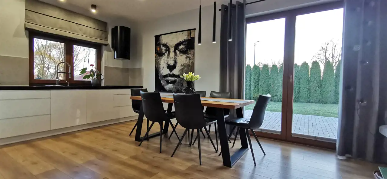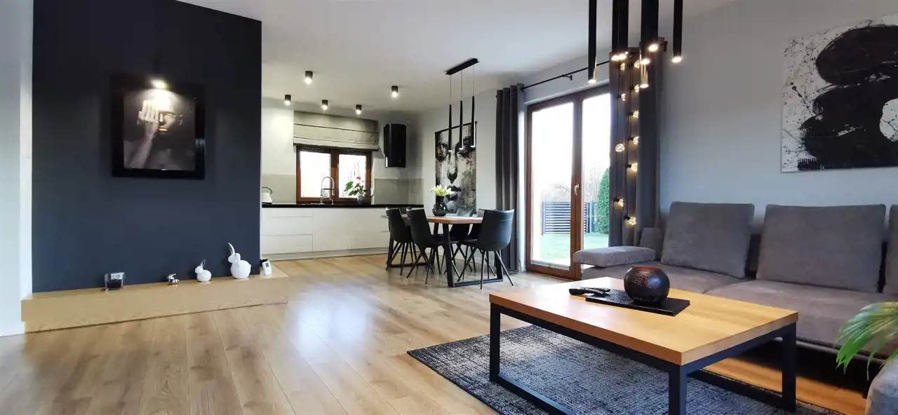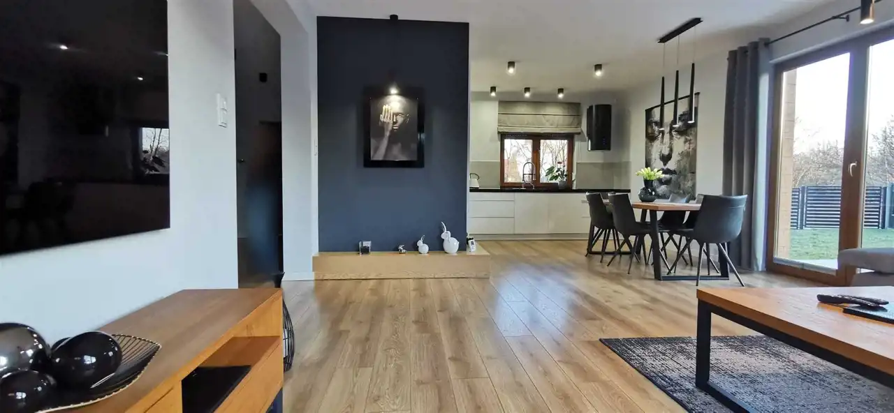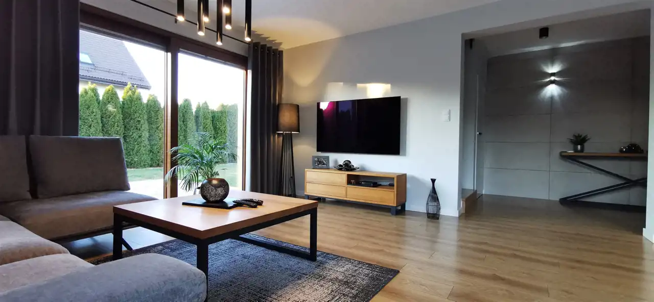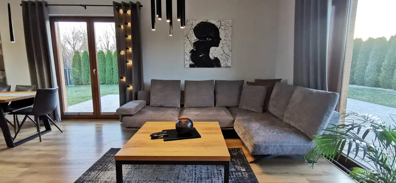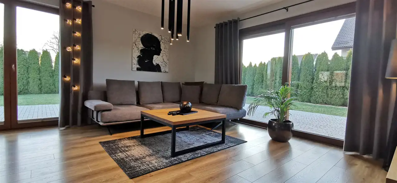 - Przestronny salon z miejscem na relaks i wyjściem na taras.