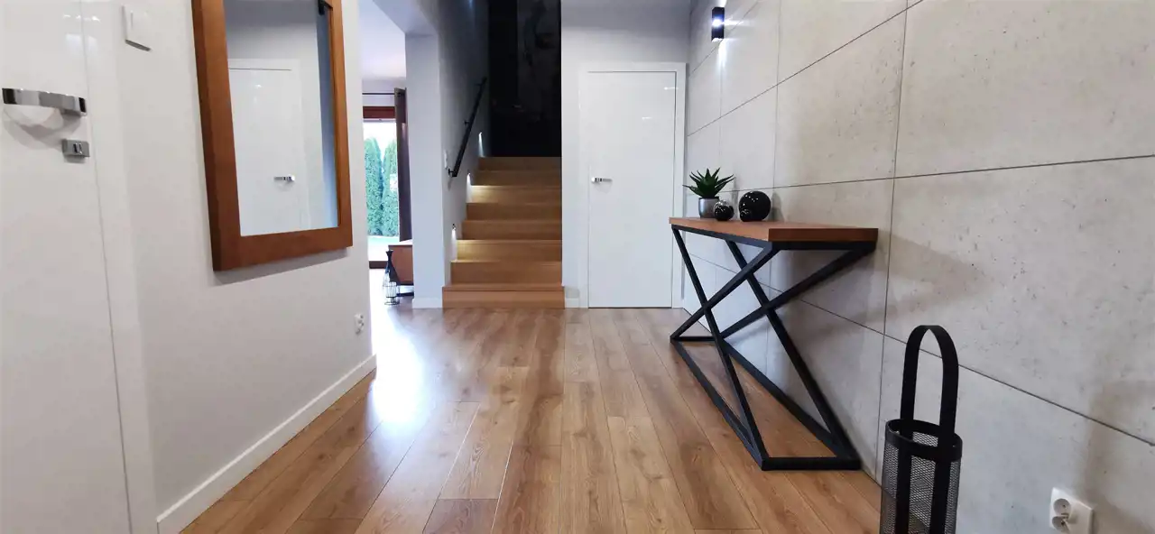 - Okna: PCV, zapewniające bezpieczeństwo i izolację termiczną.