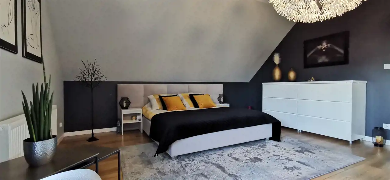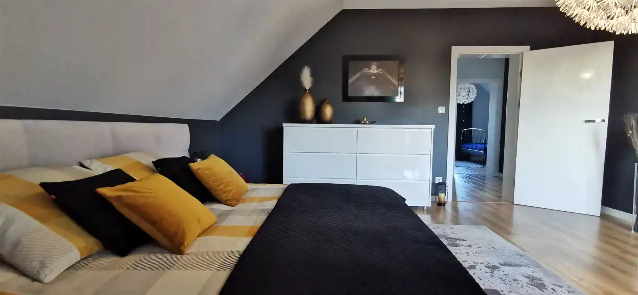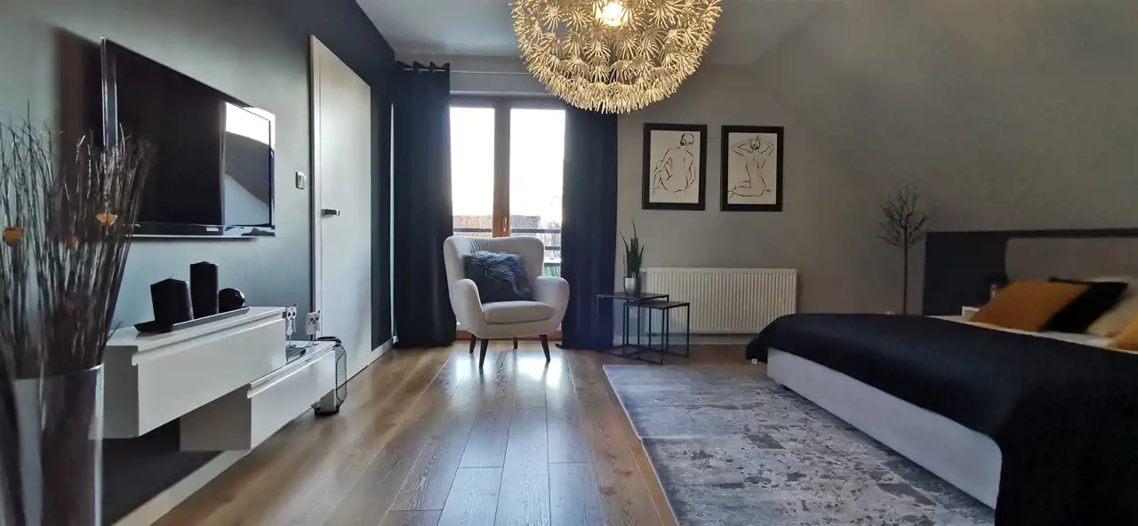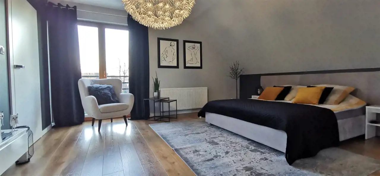- Trzy sypialnie, w tym główna z dostępem do garderoby