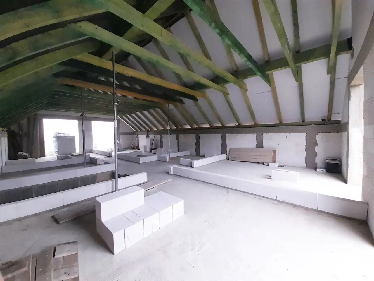 Dom w stanie surowym otwartym- wykonany z materiałów wysokiej jakości, zgodnie z nowoczesnymi technologiami. Dach pokryty dachówką ceramiczną. Ściany wykonane z bloczków y-tong. Strop teriva. Schody żelbetowe. Komin systemowy.