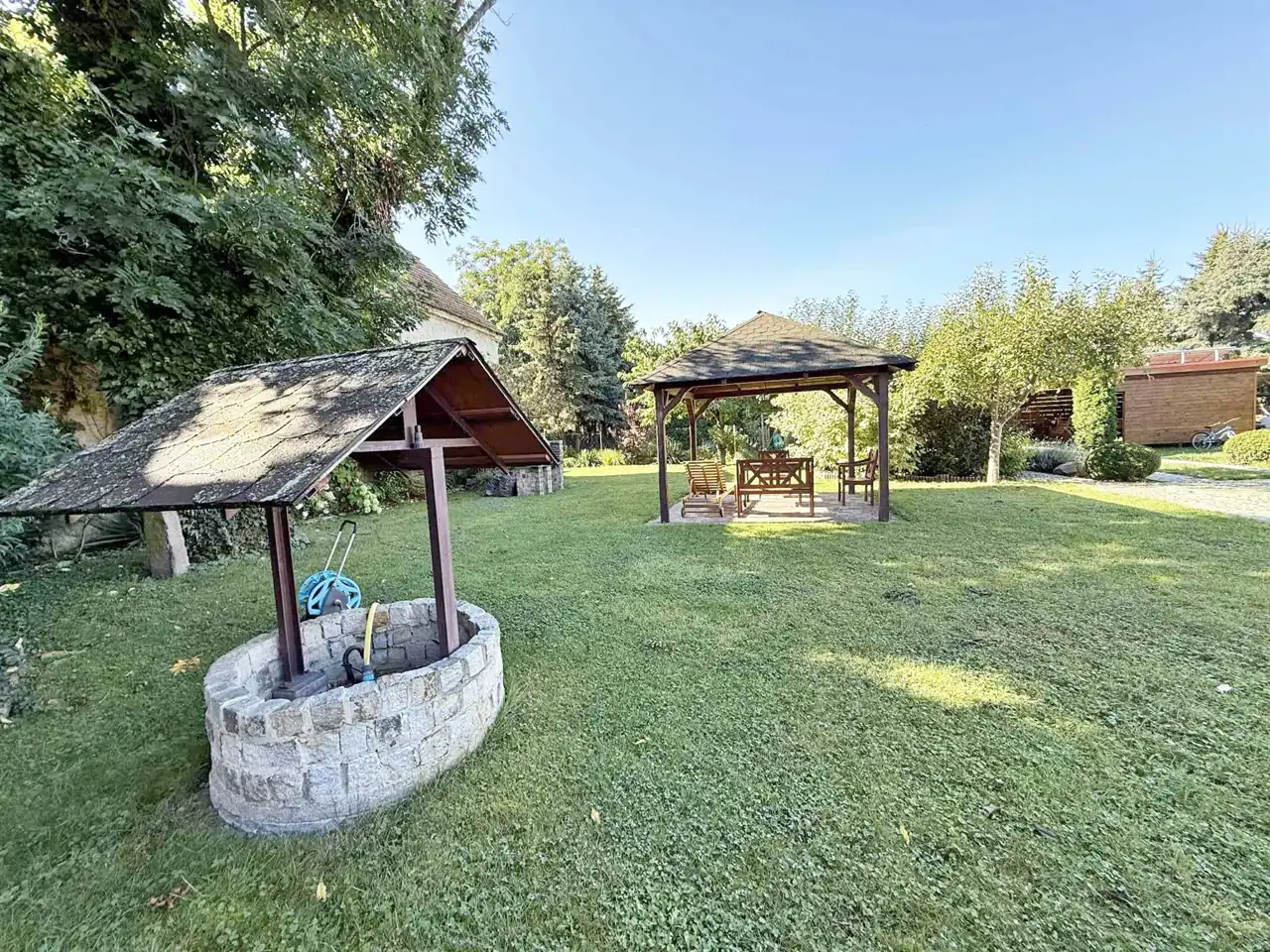 Wraz z lokalem ogród do wyłącznej dyspozycji część rekreacyjno-ozdobna i warzywniak- razem ok 3 ary, jest tez część wspólna- rekreacyjna z grillem i wiatą- ok 5 arów, na wyłączność także 2 garaże murowane. Do dyspozycji 3 piwnice- w jednej kotłownia, w drugiej spiżarnia, w 3 składzik.
