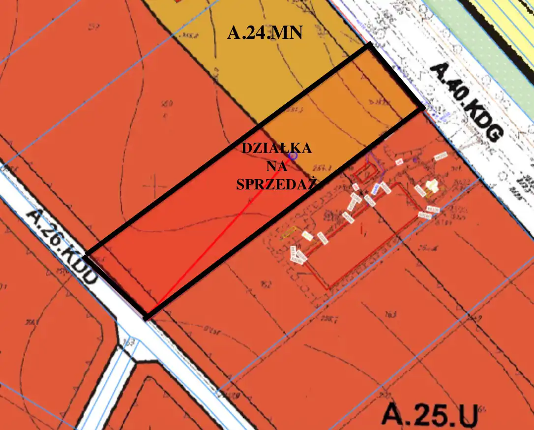 Działka przy głównej drodze w Witkowie obok Jaworzyny Śląskiej o powierzchni 47,08 ar i w MPZP przeznaczona częściowo pod zabudowę wolnostojącą i bliźniaczą oraz pod zabudowę usługową.