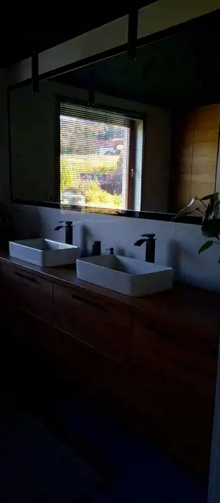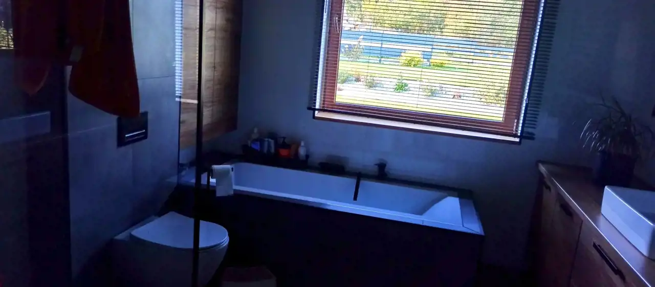 Płyta indukcyjna znajduje się w wyspie, lodówka dwudrzwiowa, zmywarka w zabudowie. Dom jest w pełni wykończony z wyjątkiem garażu . Na strychu można zrobić dwa pokoje, łazienkę i garderobę.