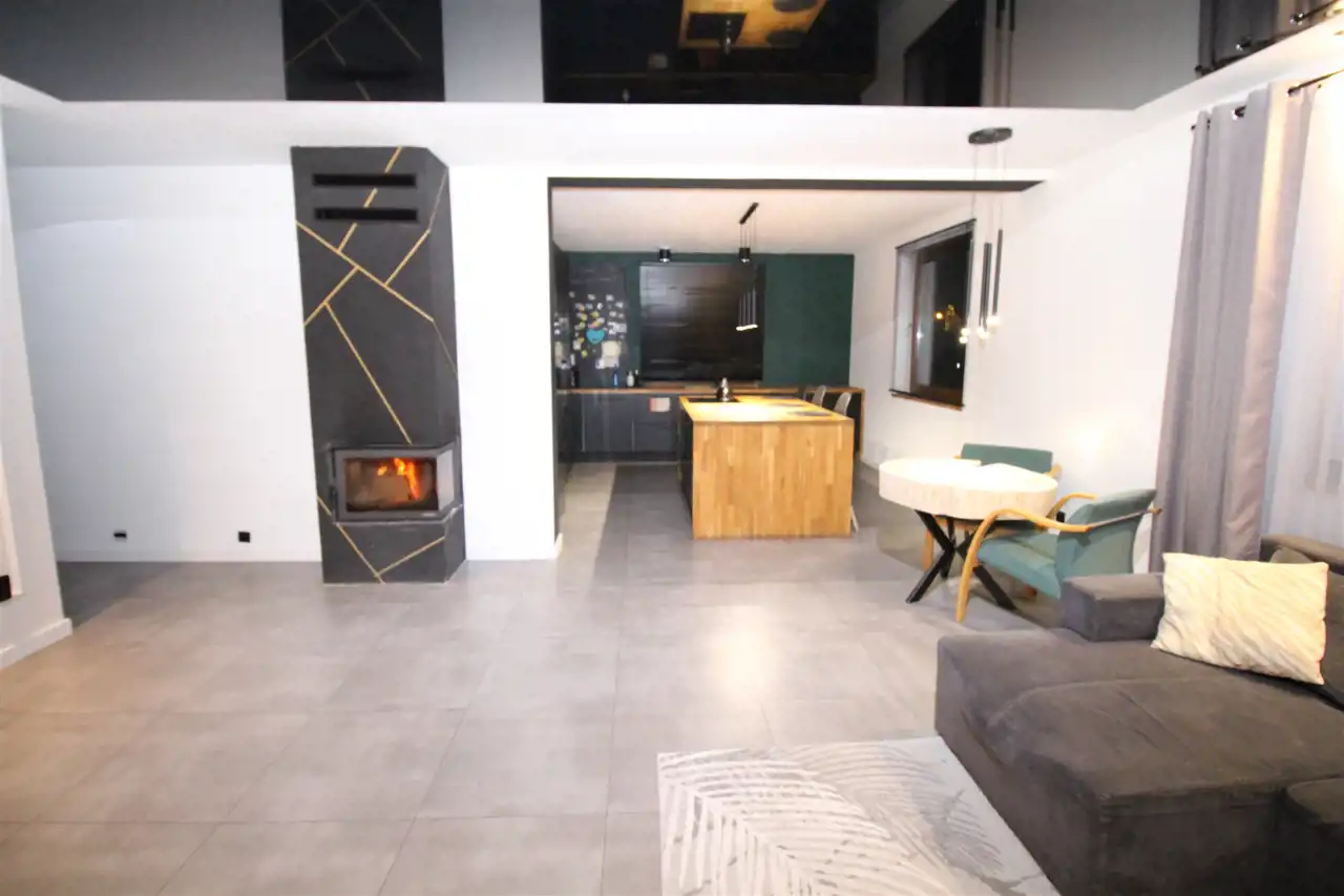 Z dużego przedpokoju z miejscem na szafę można wyprowadzić schody na użytkowe poddasze (podwyższone, po podłodze 126m2), obecnie jest wyłaz. Na ocieplonym poddaszu możliwość zrobienia dwóch sypialni i łazienki ( są już wyprowadzone instalacje). Na ścianach gładzie, na podłogach panele oraz płytki ceramiczne dobrej klasy. Duże okna pcv z zewnętrznymi roletami dają bardzo dobre doświetlenie wszystkich pomieszczeń. Ogrzewanie podłogowe w całym domu, kominek z płaszczem wodnym. Woda oraz kanalizacja miejskie. W cenie domu zabudowa kuchenna oraz łazienki. Elewacja domu również do wykończenia we własnym zakresie. Działka domu częściowo ogrodzona, zagospodarowana z licznymi nasadzeniami. Z salonu bezpośrednie wyjście na zadaszony taras. Otoczenie łąk i drzew, zabudowy jednorodzinnej. Bardzo dobra lokalizacja. W pobliżu orlik, liczne boiska, skate park, w zimie lodowisko. Odległość od Wałbrzycha 5 minut, kursuje autobus miejski linia nr 5. Cena 1100000zł - do negocjacji. Serdecznie polecam Anna Dąbrowska, tel: 722 27 27 15, e-mail: anna@akwadratnieruchomosci.pl