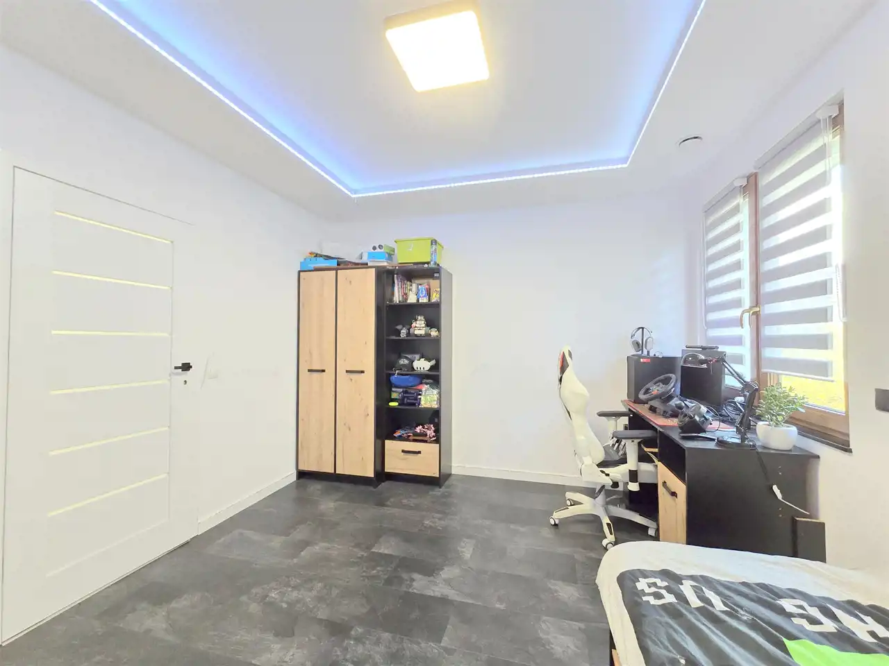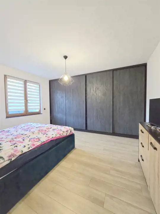 Funkcjonalna, zadbana słoneczna nieruchomość z 2021r. Posiadająca ogrzewanie podłogowe - pompa ciepła. Została wykończona wyższej klasy materiałami budowlanymi. Na dachu zamontowano panele solarne, a w oknach rolety antywłamaniowe.