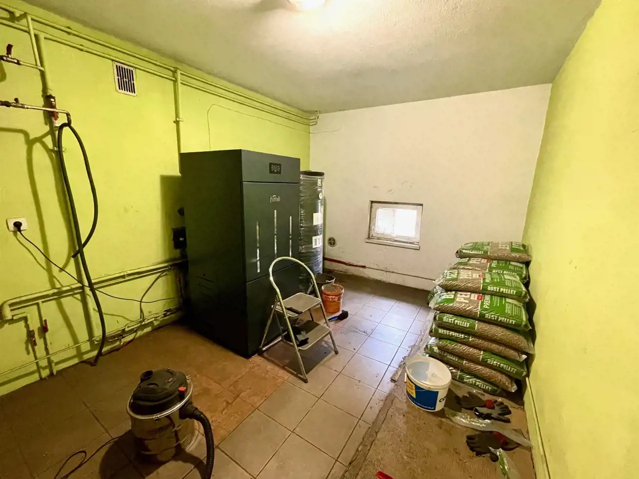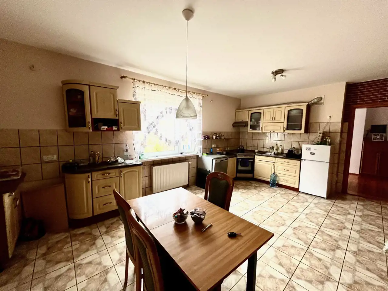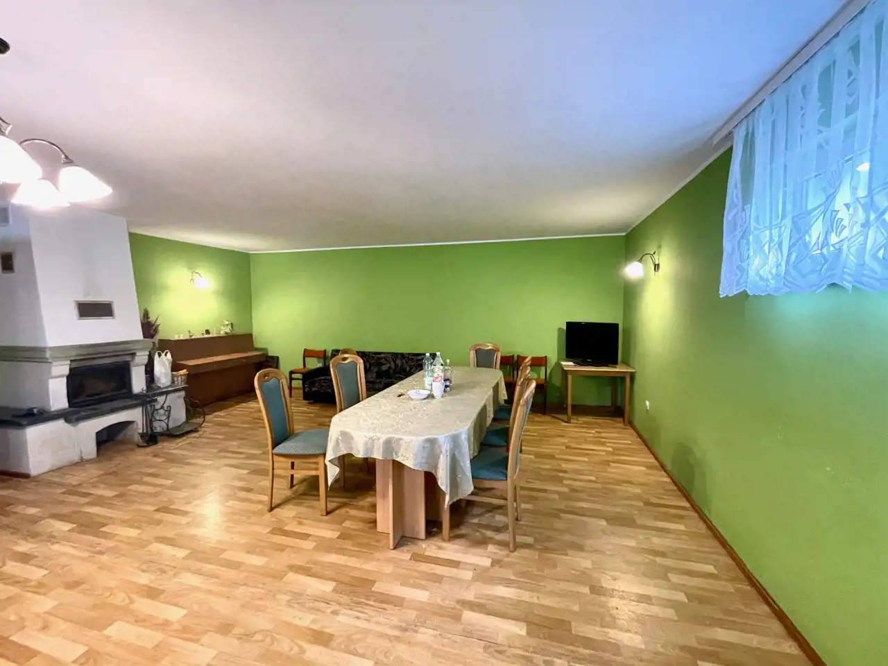 Stolarka PCV, na podłogach deska i panele. W kuchni i łazienkach glazura i terakota. Ściany pokryte gładzią. Pomieszczenia i ciepła woda ogrzewane są nowoczesnym piecem na pelet marki Ferolli. W kuchni funkcjonalne meble i sprzęt AGD.