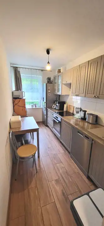 Mieszkanie rozkładowe, przestrzenne, parę lat temu przeszło gruntowny remont, do odświeżenia. Fajna kuchnia w zabudowie wraz ze sprzętem agd lodówka, indukcja, piekarnik, zmywarka, pralka.