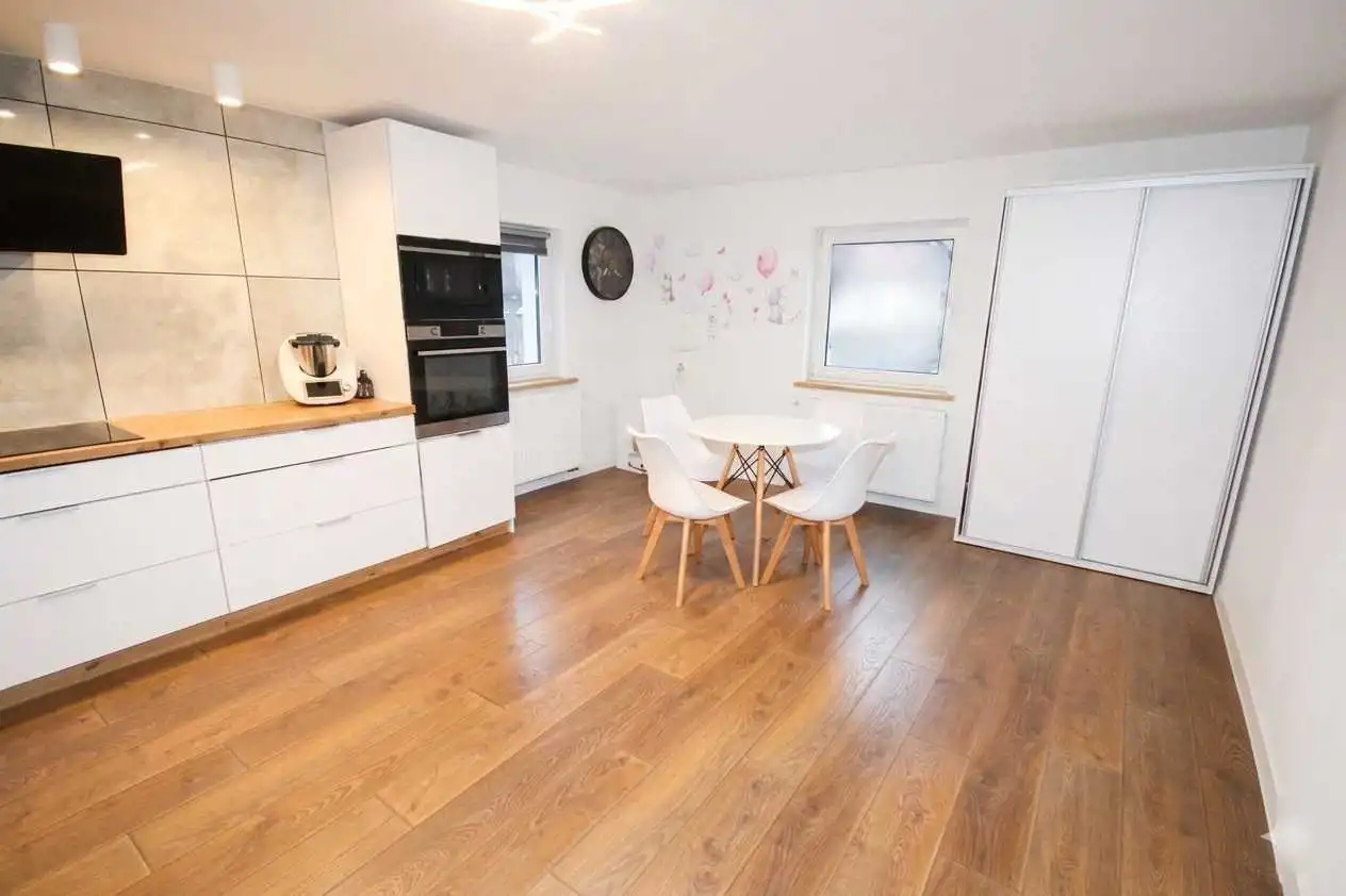 - kuchnia w zabudowie z jadalnią,