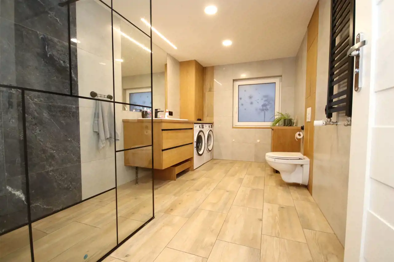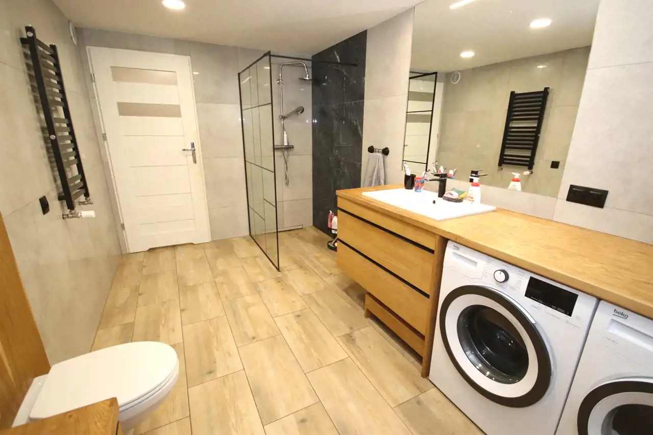 - W łazience i w przedpokoju ogrzewanie podłogowe; prysznic typu walk-in (bez progów);
