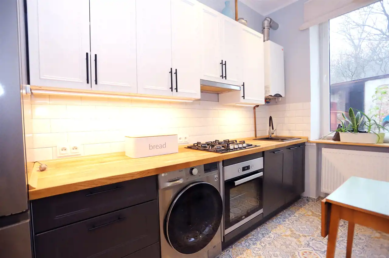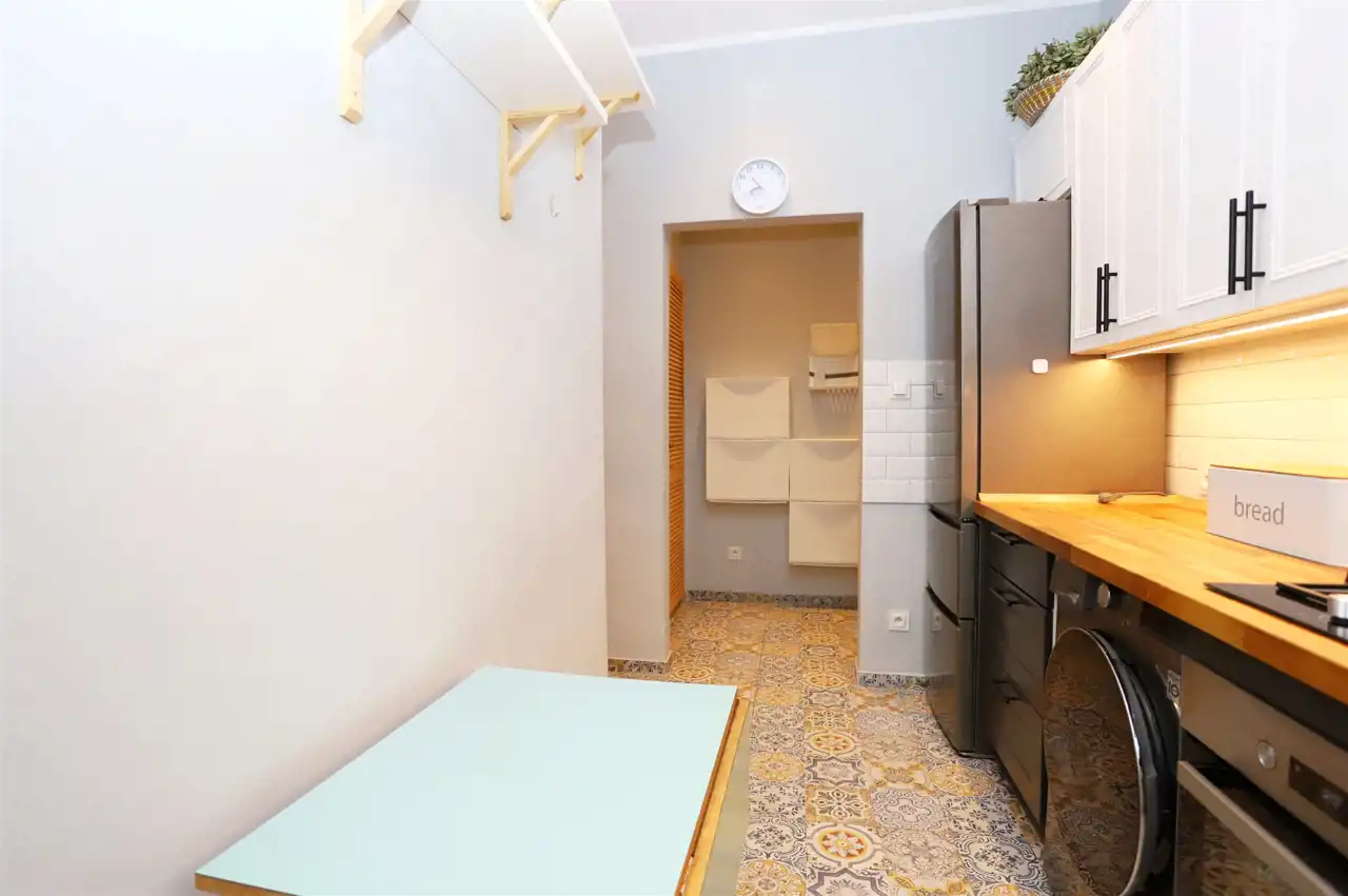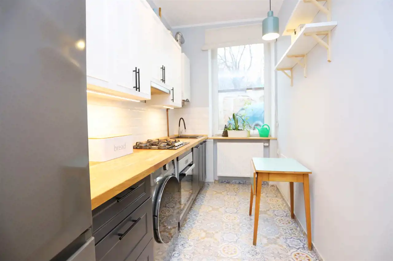 Mieszkanie usytuowane jest na parterze w odrestaurowanej kamienicy. Nieruchomość składa się z przestronnego salonu, ustawnej sypialni, oddzielnej kuchni, łazienki oraz przedpokoju. Mieszkanie jest w pełni wyposażone oraz stylowo zaaranżowane - gotowe do zamieszkania. Salon wyposażony jest w rozkładaną sofę, stolik, witrynę oraz szafkę RTV wraz z telewizorem. W sypialni znajdziemy duże łóżko sypialniane, szafę oraz biurko. W kuchni natomiast znajdziemy meble kuchenne na wymiar wraz ze sprzętami tj lodówka, płyta gazowa, piekarnik, zmywarka oraz pralko suszarka. Nieruchomość ogrzewana jest ekonomicznym ogrzewaniem gazowym. Dodatkowo do nieruchomości przynależy komórka, która znajduję się na zewnątrz - jest to idealne miejsce do przechowywania różnych rzeczy np rowerów.
