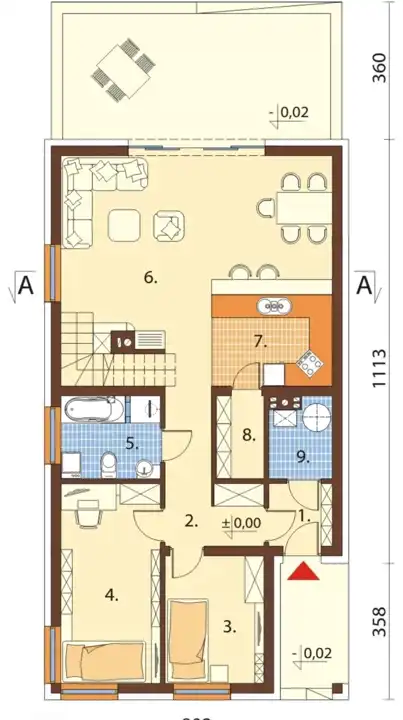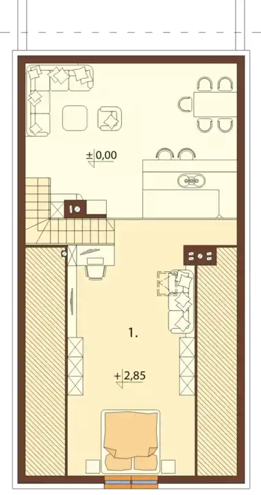 Dom 105 M2, parterowy z antresolą usytuowany na działce 500 M2 wśród niskiej nowoczesnej zabudowy jednorodzinnej.