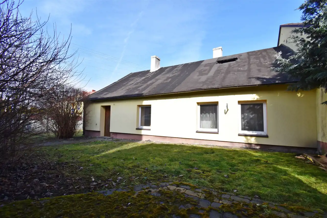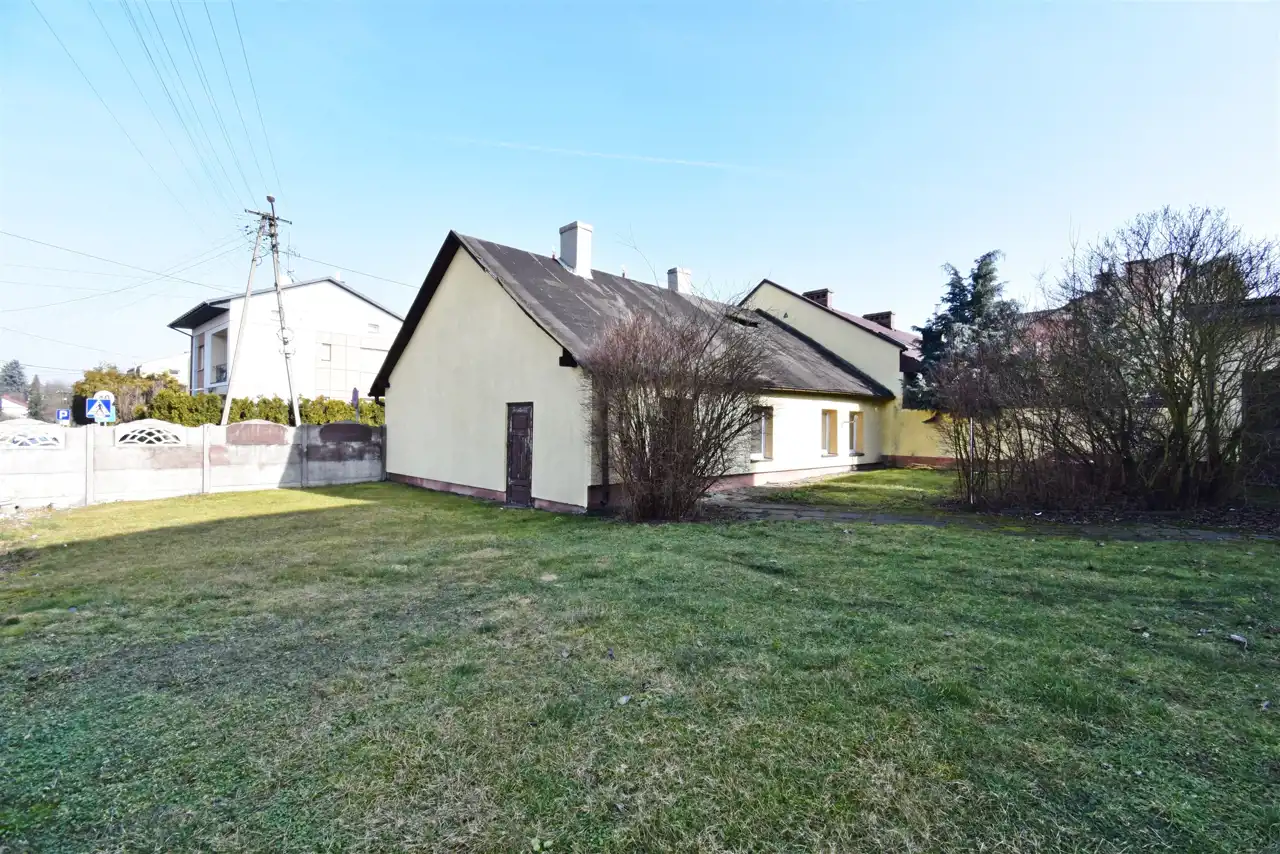 Dom częściowo podpiwniczony, wykonany z opoki, dach kryty papą, stolarka okienna PCV, ogrzewanie piecem kaflowym. Dojazd do nieruchomości ul. 3-go Maja, wjazd na posesje od ul. Majora AK Stefana Gądzio-Kosa.
