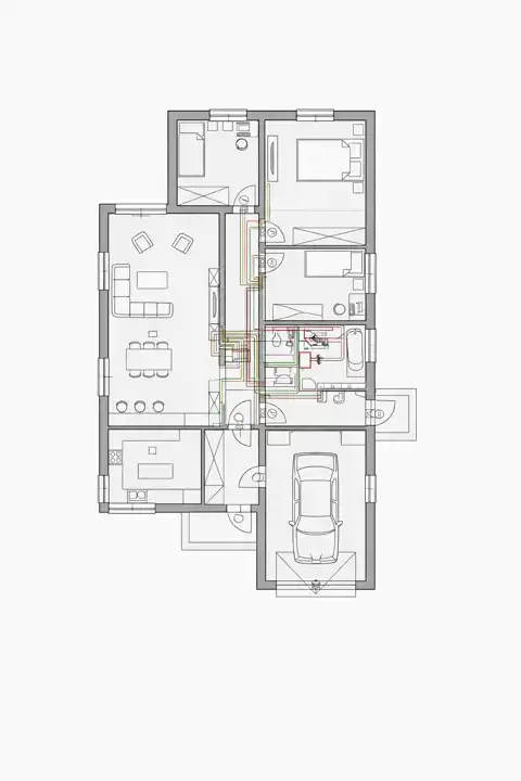 The house is built of ceramic blocks, with a metal tile roof, insulated with polystyrene. Triple-glazed PVC windows. Planned heating: gas or heat pump.