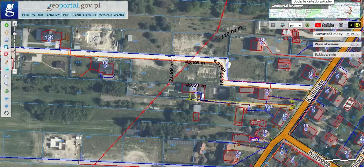 A zoning decision has been issued for the plot for the construction of a single-storey detached house with a usable area of 96.34 m² and an outbuilding of 42.77 m², together with an external section of the electrical installation (WLZ) and a sanitary sewage tank. Access via an asphalt road and then approx. 86 m of a gravel road.