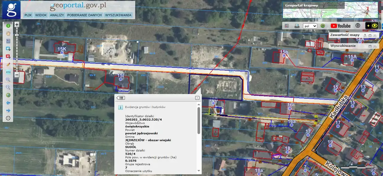 For sale: a plot of land with an area of 1076 m², located in Sudół, Jędrzejów commune.