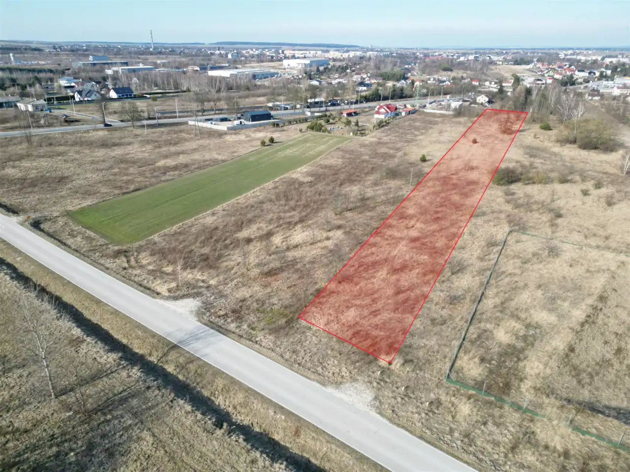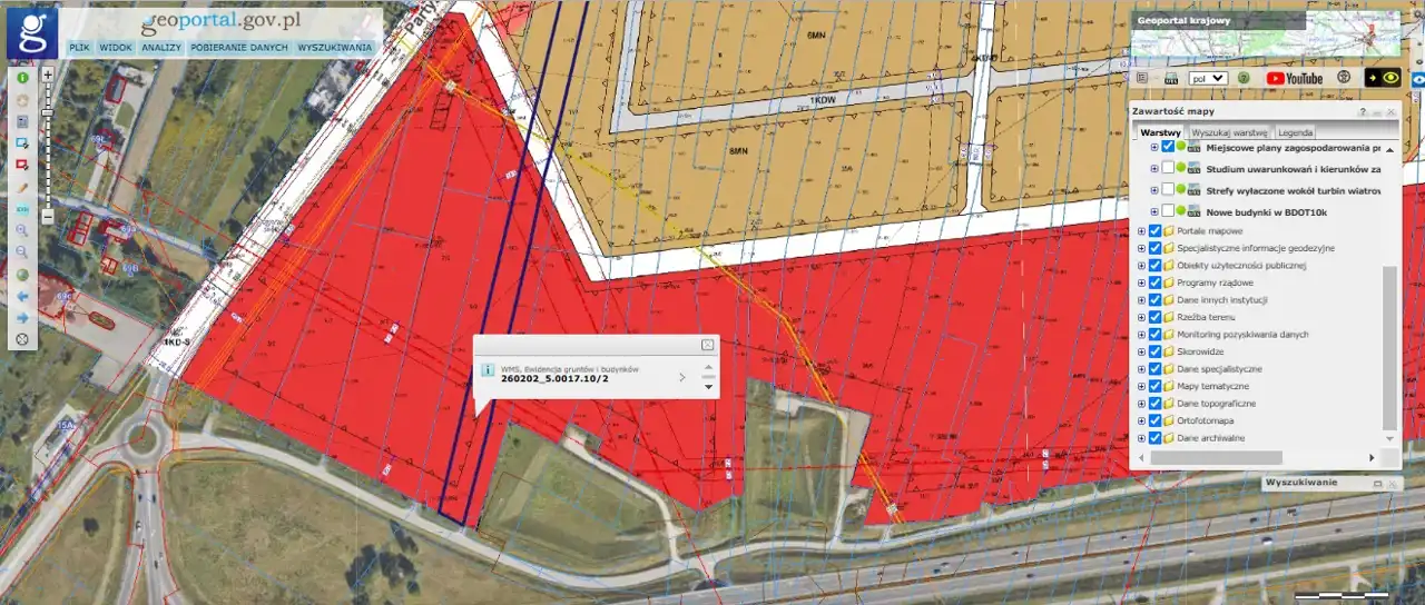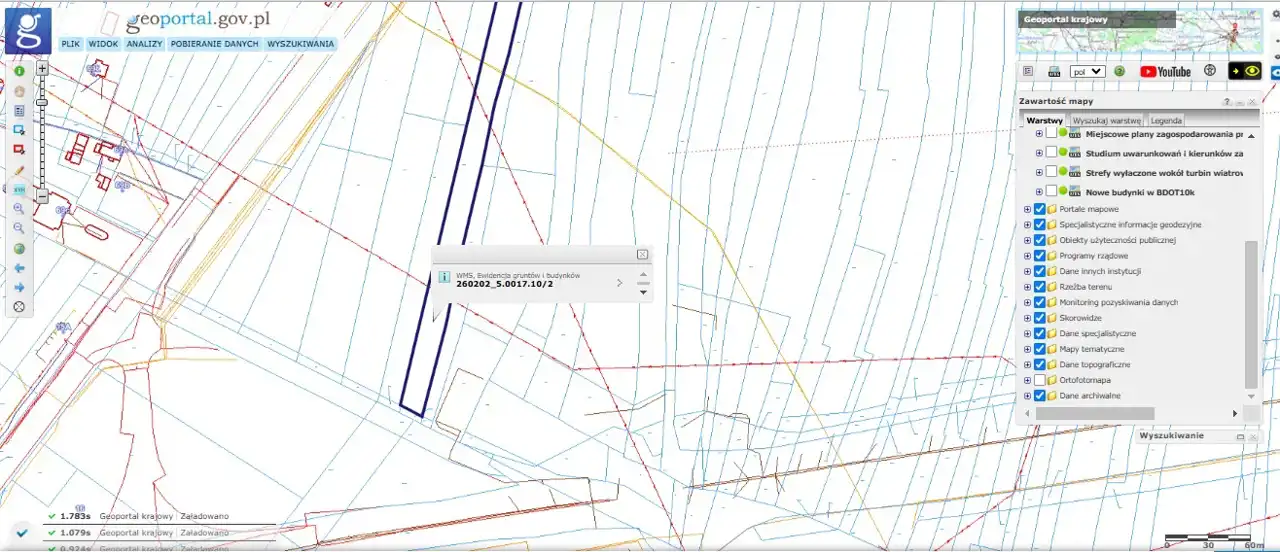 - pozostała część działki to strefy ochronne linii energetycznych, pasów drogowych i sieci gazowej.