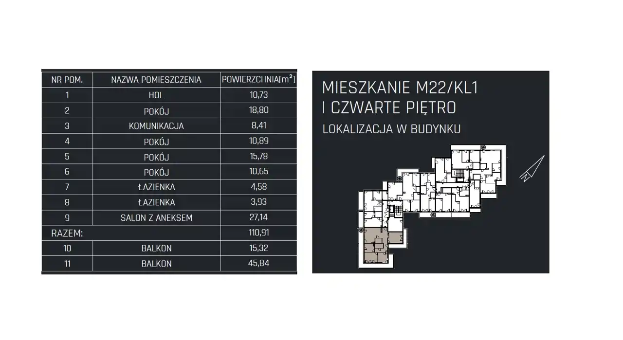 - Charakterystyka mieszkania 110.91 m2, 5 pokoi