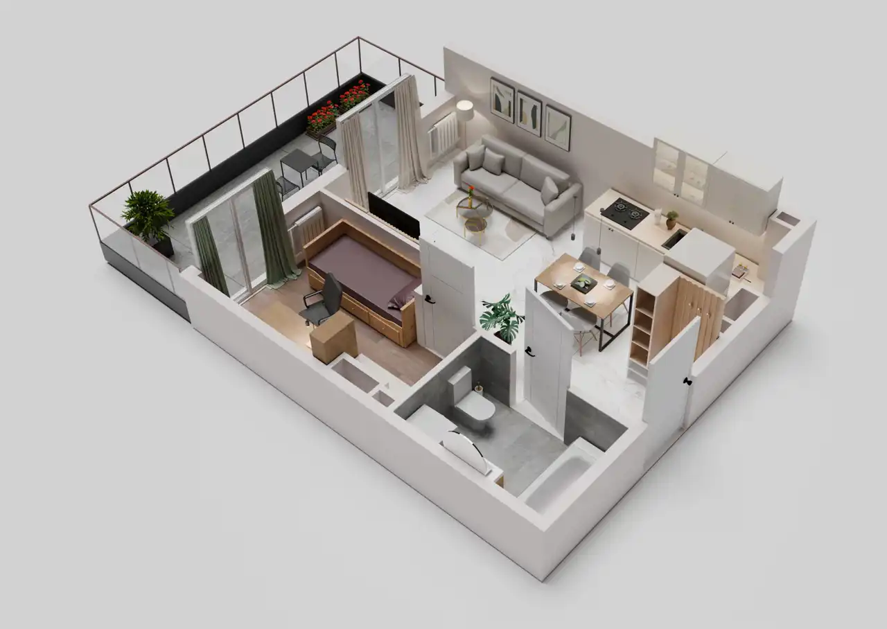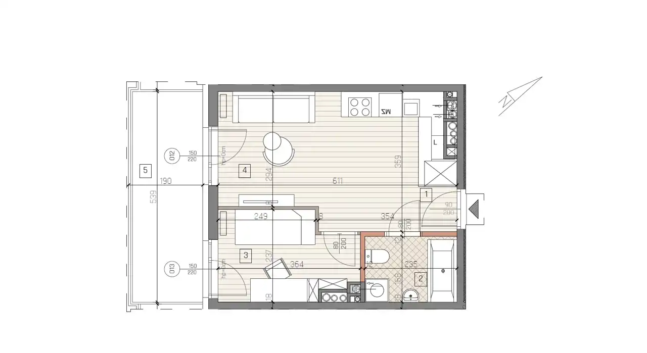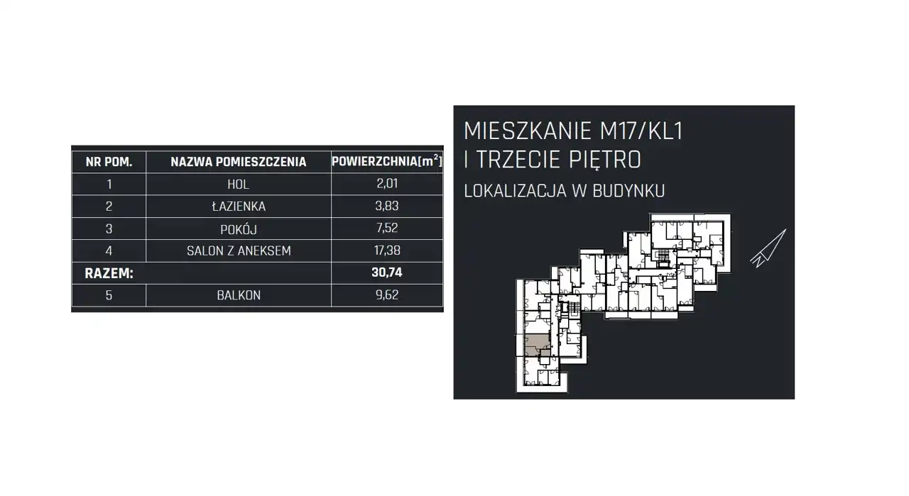 - Charakterystyka mieszkania 30.74 m2, 2 pokoje