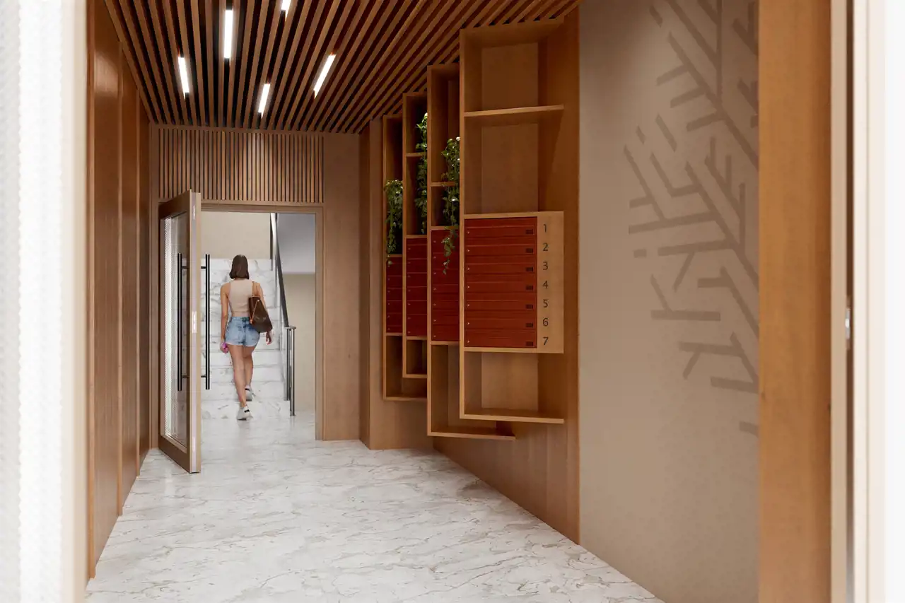 Dodatkowo inwestycja została wyposażona w nowoczesne udogodnienia „smart”, takie jak bezkluczowy dostęp do budynku oraz możliwość rezerwacji przestrzeni wspólnych — co znacząco zwiększa komfort codziennego użytkowania.