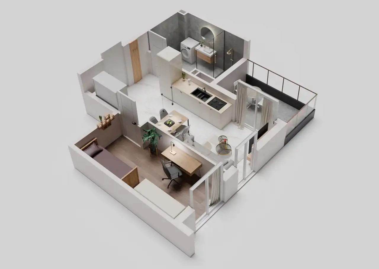 - Charakterystyka mieszkania 32.36 m2, 2 pokoje