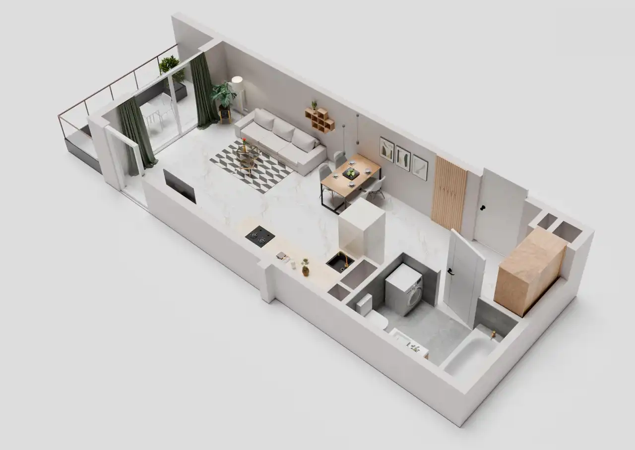 - Charakterystyka mieszkania 32.48 m2, 1 pokój